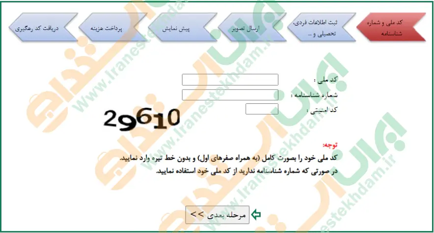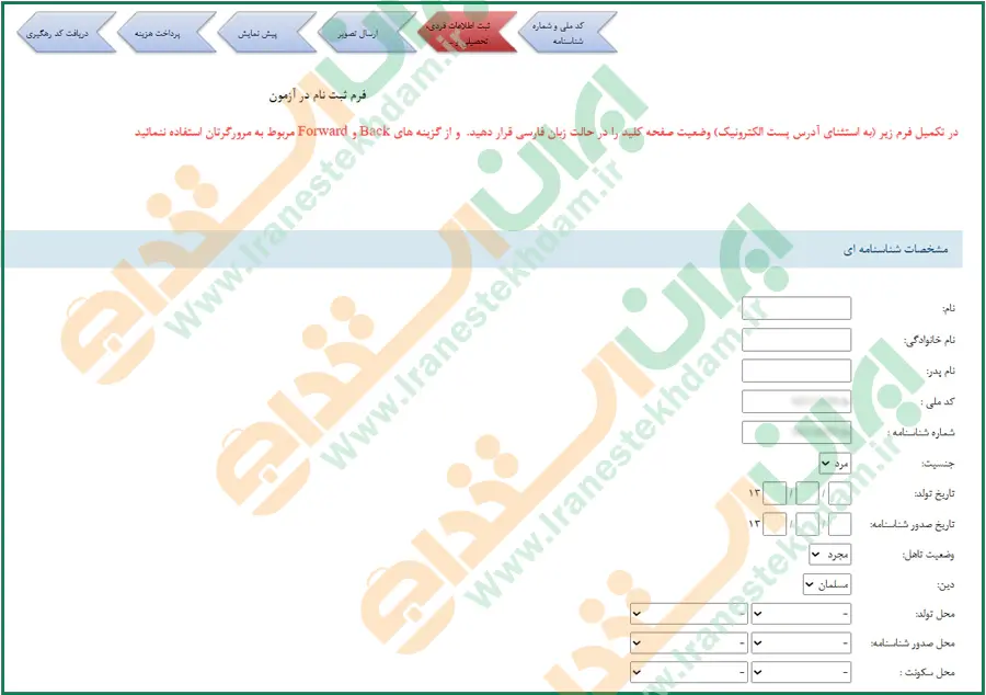 مراحل تکمیل فرم ثبت نام