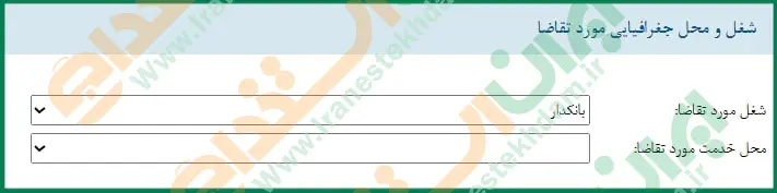 در این بخش شغل موردتقاضا و محل خدمت را از بین گزینههای موجود انتخاب نمایید.