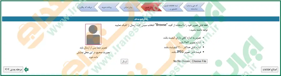 در این مرحله تصویر خود را با توجه به شرایط ذکرشده بارگذاری نمایید.