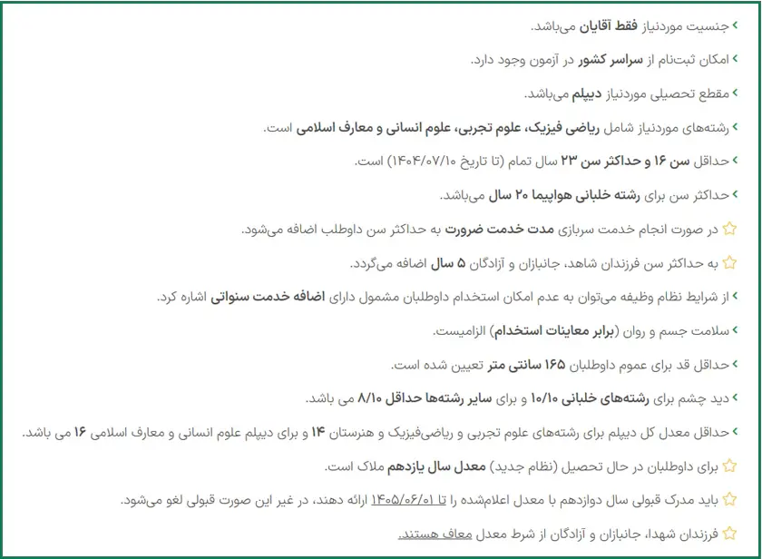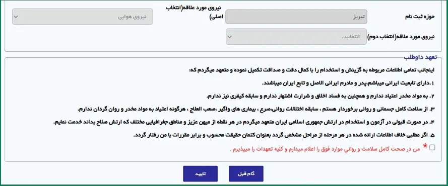 مرحله اول: انتخاب گزینه شرایط آزمون دانشگاههای افسری