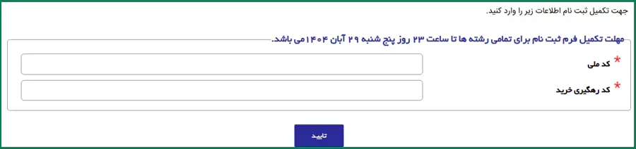 در این مرحله لازم است کد ملی و کد رهگیری خود را وارد نمایید.