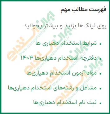 به منظور سهولت در ثبت نام آزمون استخدام دهیاریهای کشور، تیم ایران استخدام لینک مستقیم ورود به پیج استخدام دهیاریها در ادامه صفحه قرار داده است.