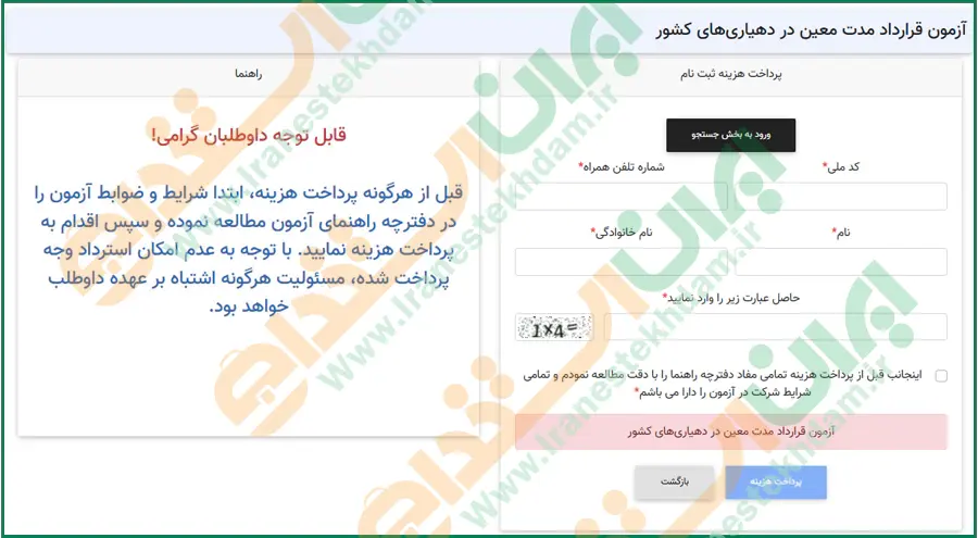 راهنمای گام به گام ثبت نام آزمون استخدام دهیاری ها