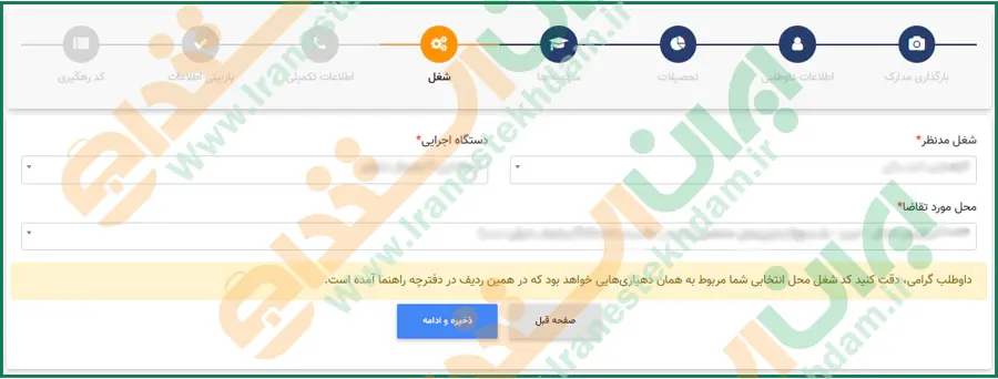 مرحله دهم: انتخاب شغل، دستگاه اجرایی و محل موردتقاضا
