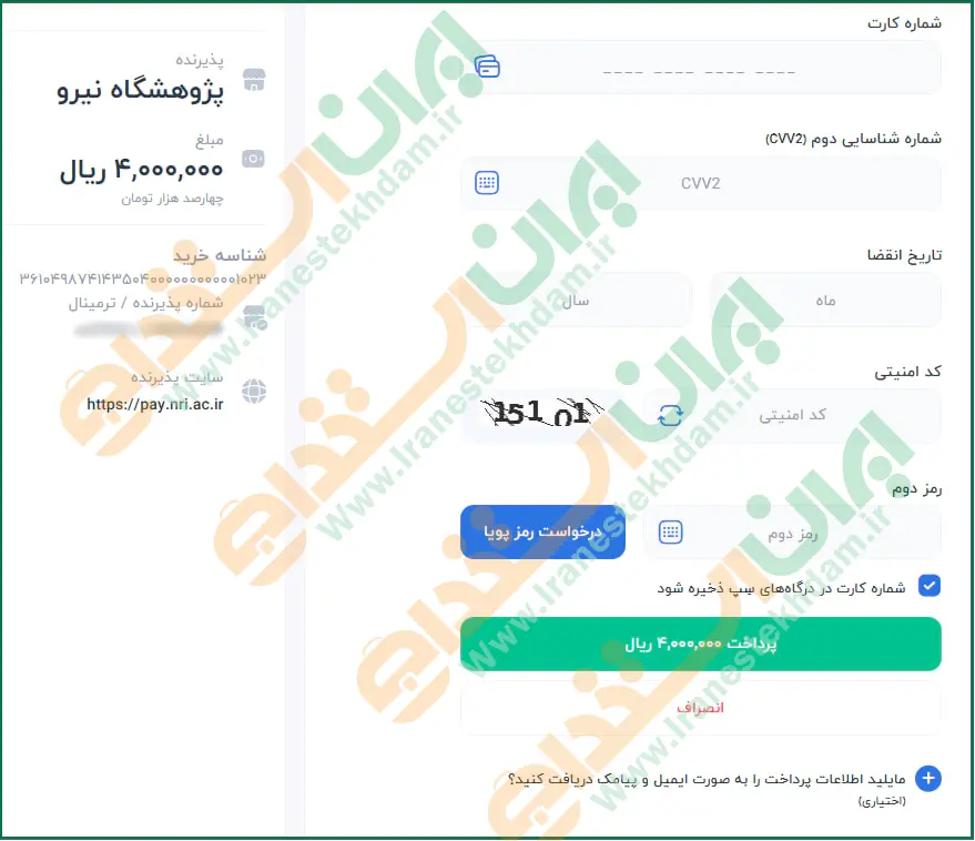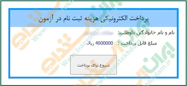 این مرحله مربوط به پرداخت هزینه ثبت نام است که لازم است مبلغ تعیین شده را پرداخت نمایید.