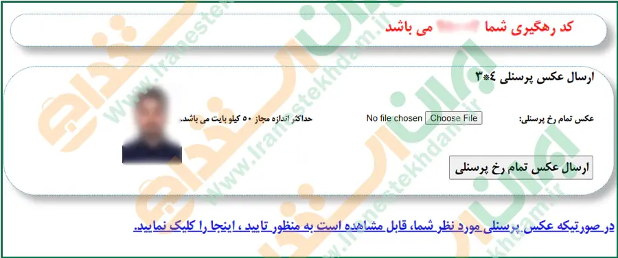 در این مرحله، عکس پرسنلی خود را بارگذاری کرده و روی گزینه "ارسال عکس پرسنلی" کلیک نمایید. سپس در انتهای صفحه، روی گزینه تایید کلیک کنید.