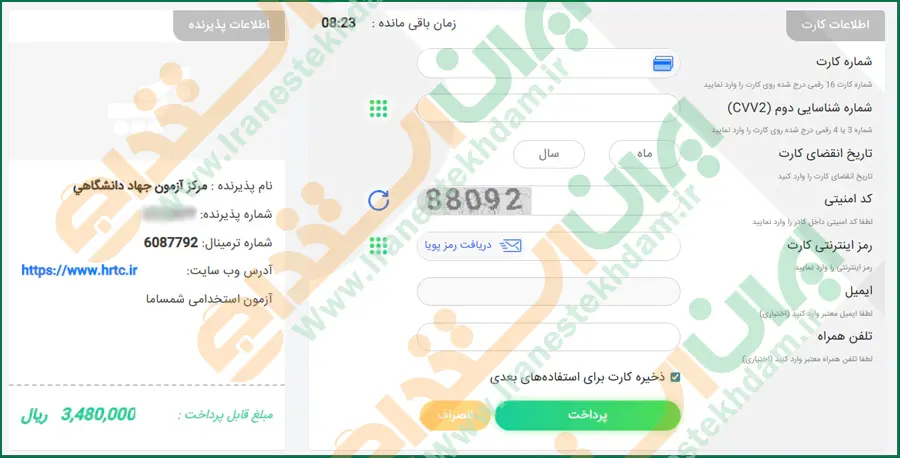 مرحله چهارم: پرداخت هزینه ثبت نام