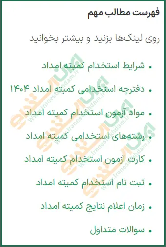 به منظور سهولت در ثبت نام آزمون استخدام کمیته امداد، تیم ایران استخدام لینک مستقیم ورود به صفحه اصلی استخدام کمیته امداد را در ادامه صفحه قرار داده است.