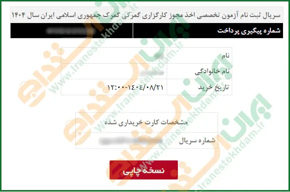 پس از پرداخت هزینه ثبت نام، یک شماره سریال اختصاصی برای شما نمایش داده میشود که باید آن را ذخیره کنید.