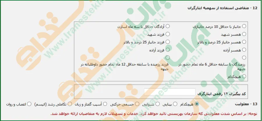 بخش دوم: انتخاب اطلاعات سهمیه ایثارگران و معلولیت