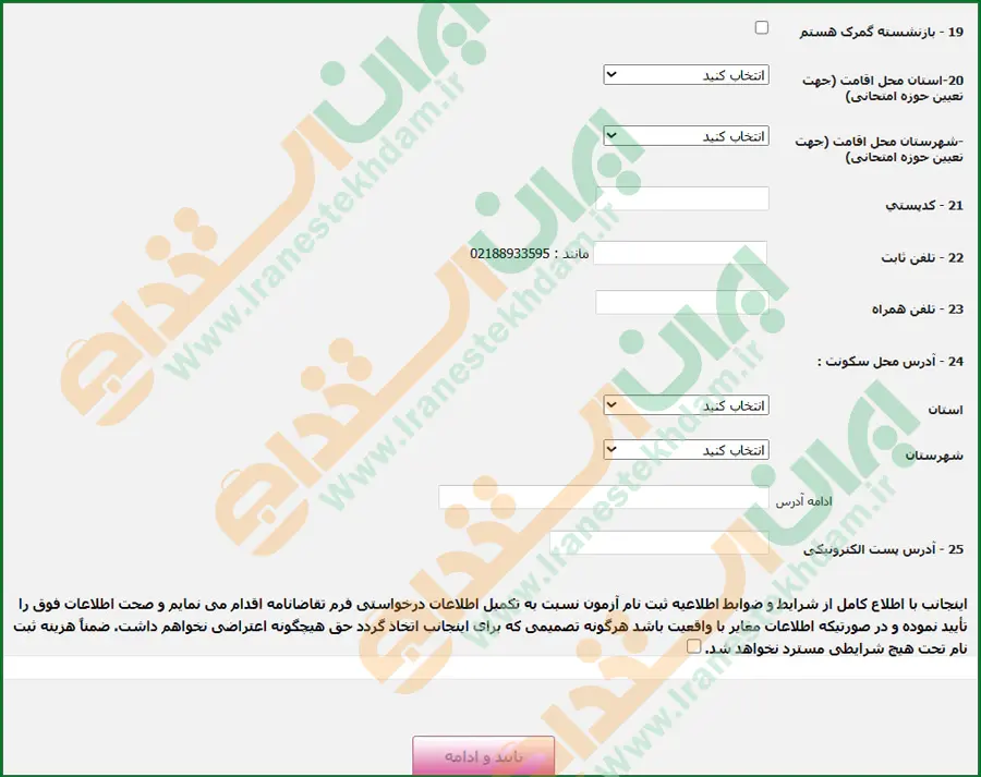 بخش چهارم: ثبت اطلاعات محل سکونت و تماس