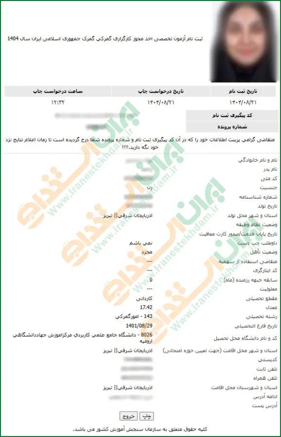 در این مرحله پیش نمایش اطلاعات ثبت شده نمایش داده میشود.
