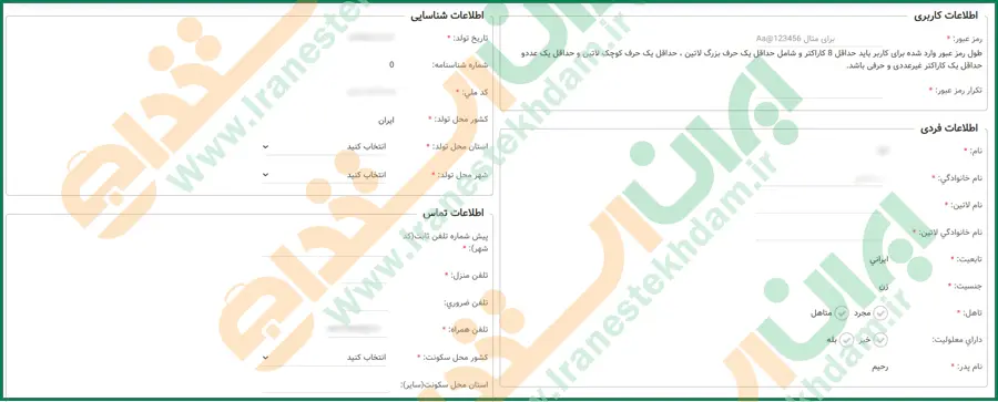 مرحله ششم: ثبت مشخصات فردی