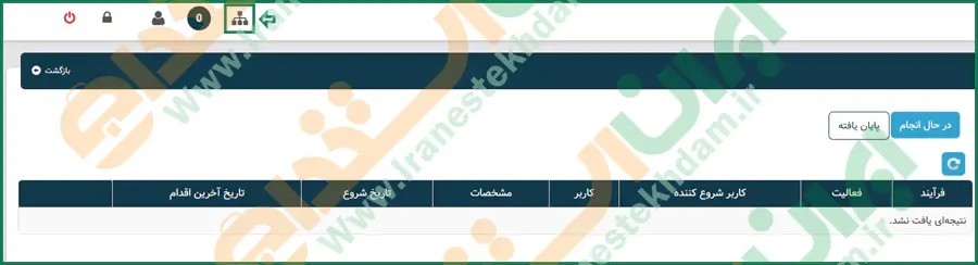 پس از کلیک بر روی گزینه ارسال، صفحهای مشابه تصویر نمایش داده میشود که لازم است از نوار بالای صفحه، مطابق تصویر، بر روی گزینه مربوطه کلیک نمایید.