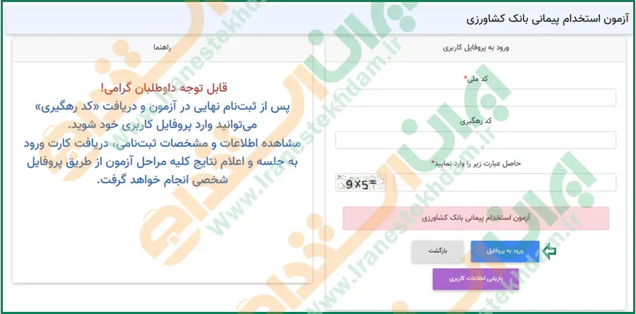 در این مرحله لازم است اطلاعاتی نظیر کد ملی، کد رهگیری و کد امنیتی نمایش داده شده را وارد کرده و سپس روی دکمه "ورود به پروفایل" کلیک نمایید.