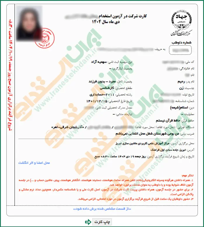 راهنمای تصویری دریافت کارت آزمون های استخدامی (جهاد دانشگاهی)