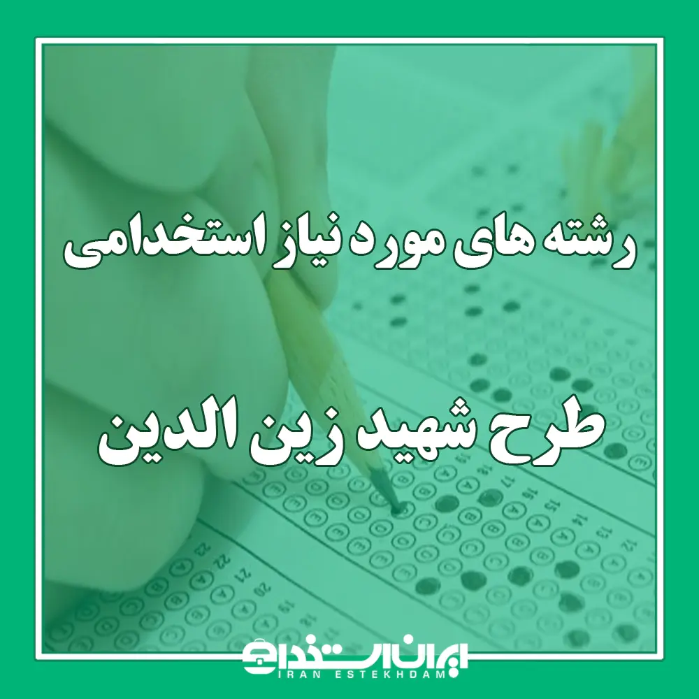 رشته ها و شغل های آزمون استخدام طرح شهید زین الدین