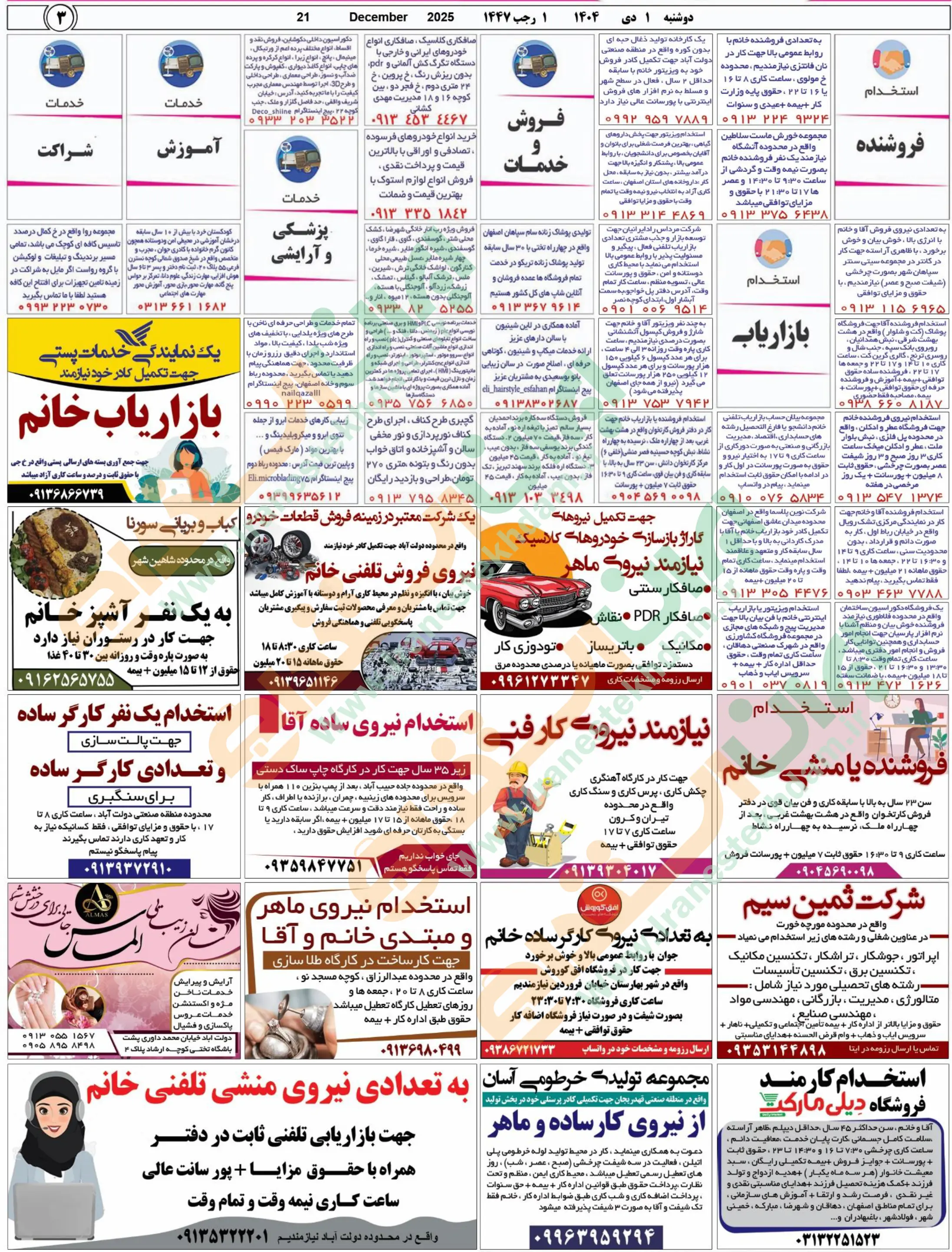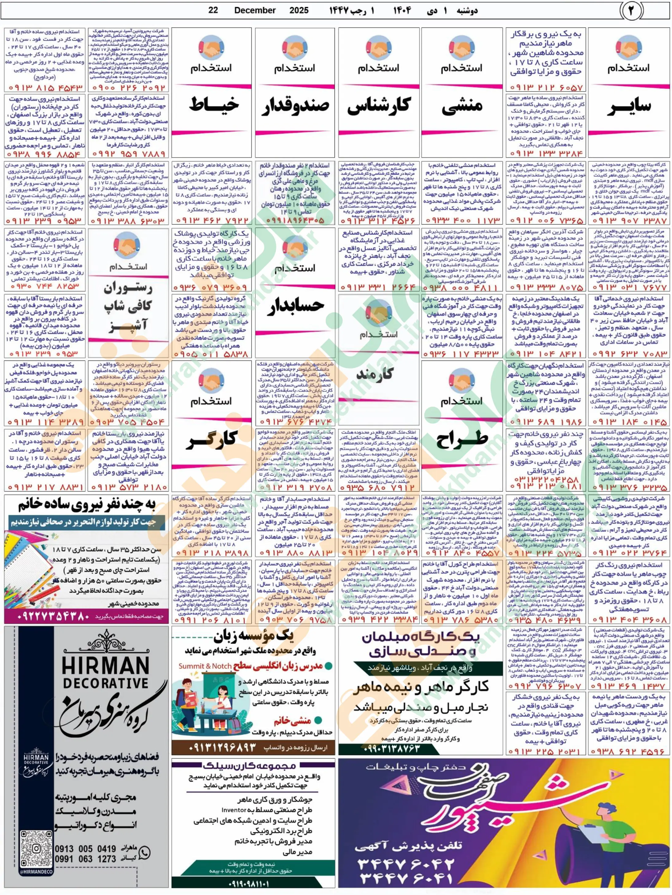 روزنامه استخدامی استان اصفهان | عصر دوشنبه ۱ دی ۱۴۰۴