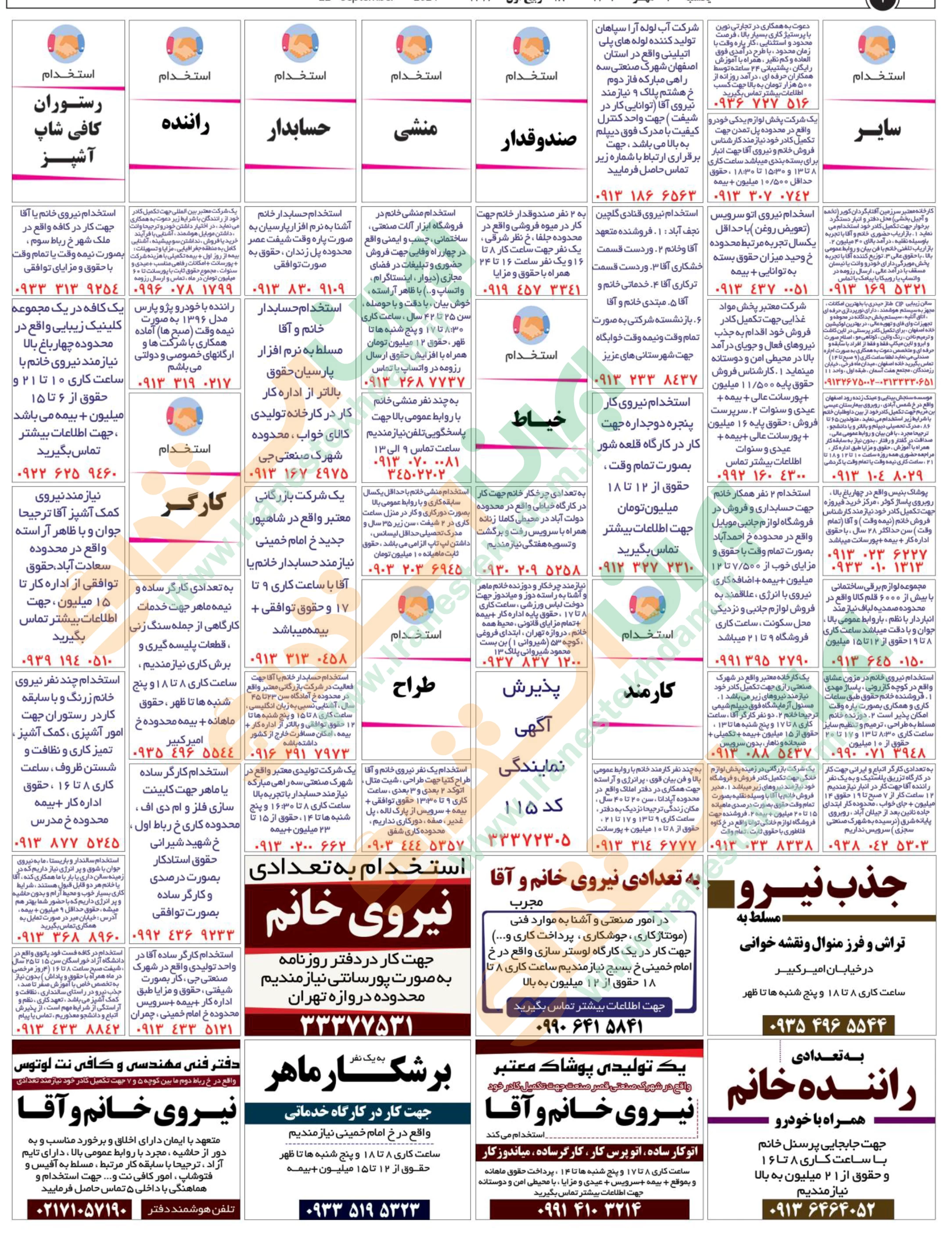 روزنامه استخدامی استان اصفهان | عصر یکشنبه 1 مهر 1403