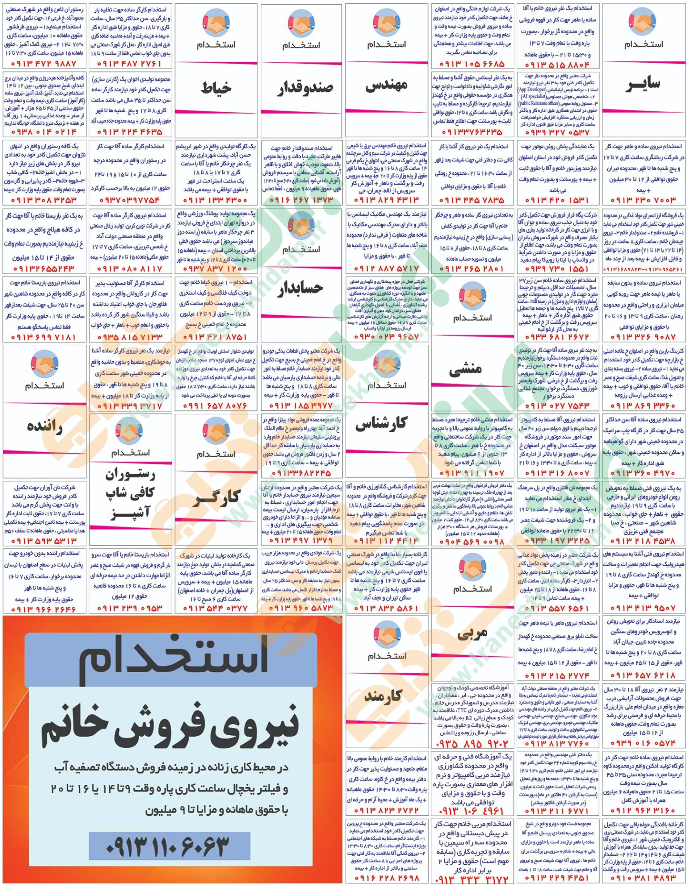 روزنامه استخدامی استان اصفهان | عصر سهشنبه ۱ مهر ۱۴۰۴