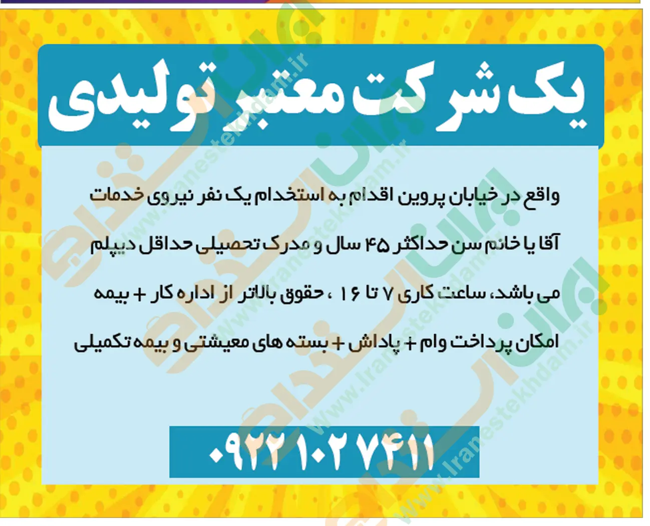 همچنین برای مشاهده صفحه نیازمندی های استخدامی استان اصفهان اینجا کلیک نمایید