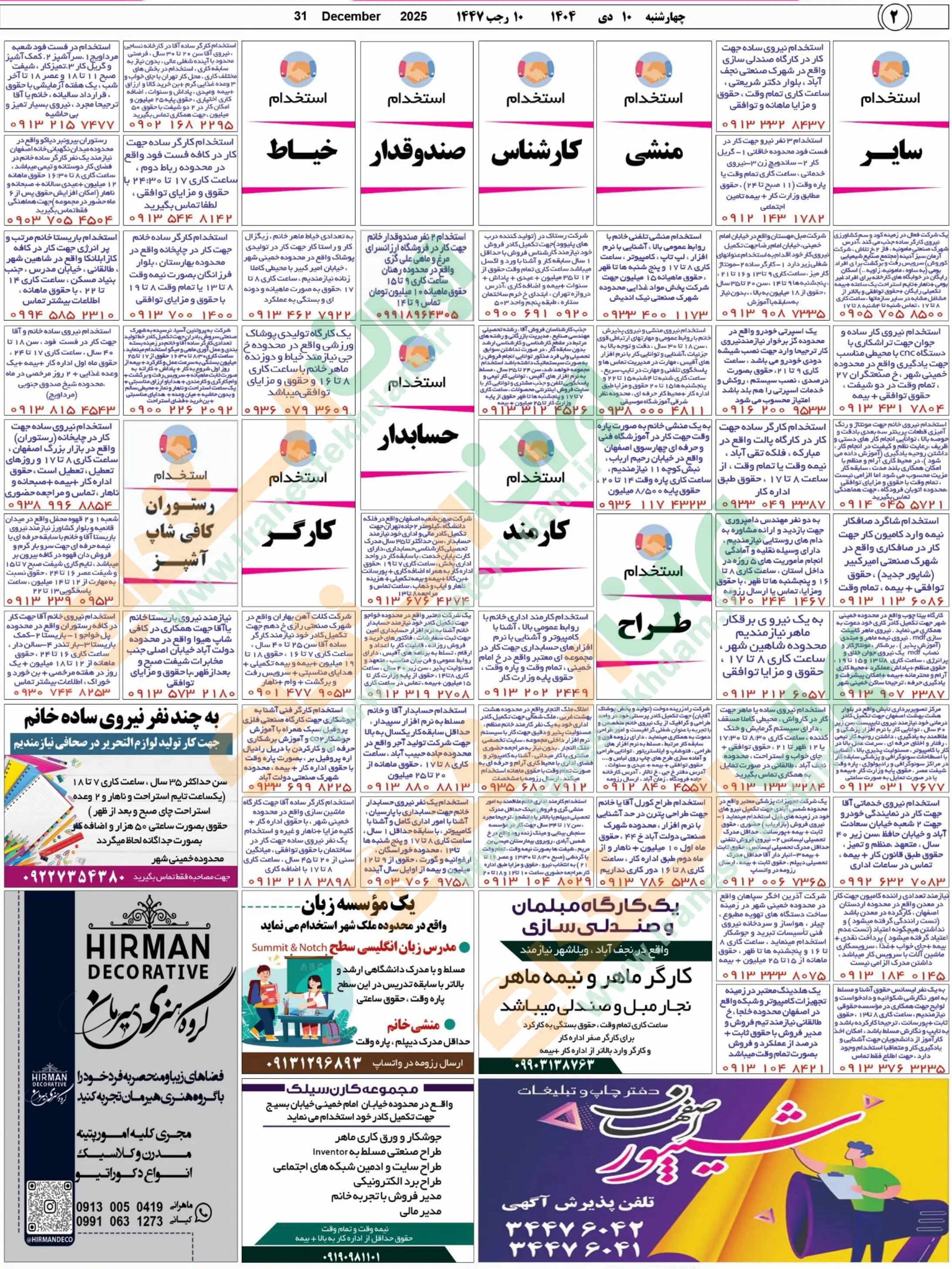 روزنامه استخدامی استان اصفهان | عصر چهارشنبه 10 دی 1404