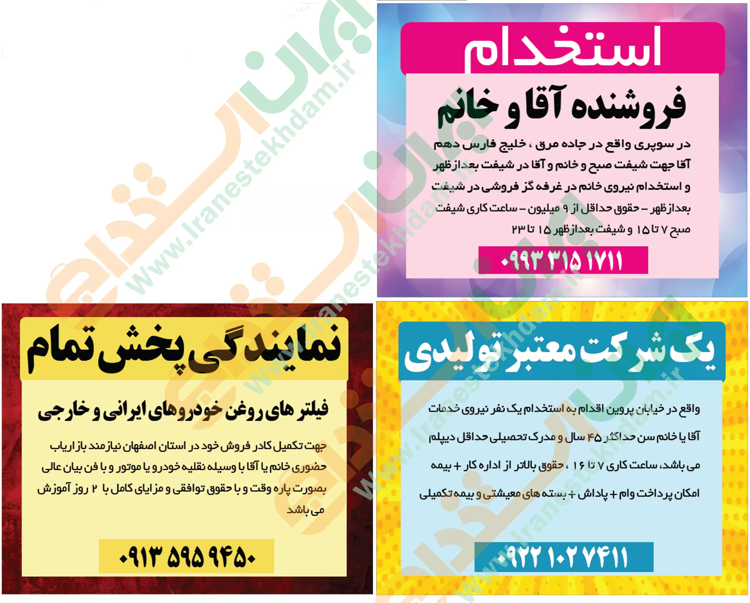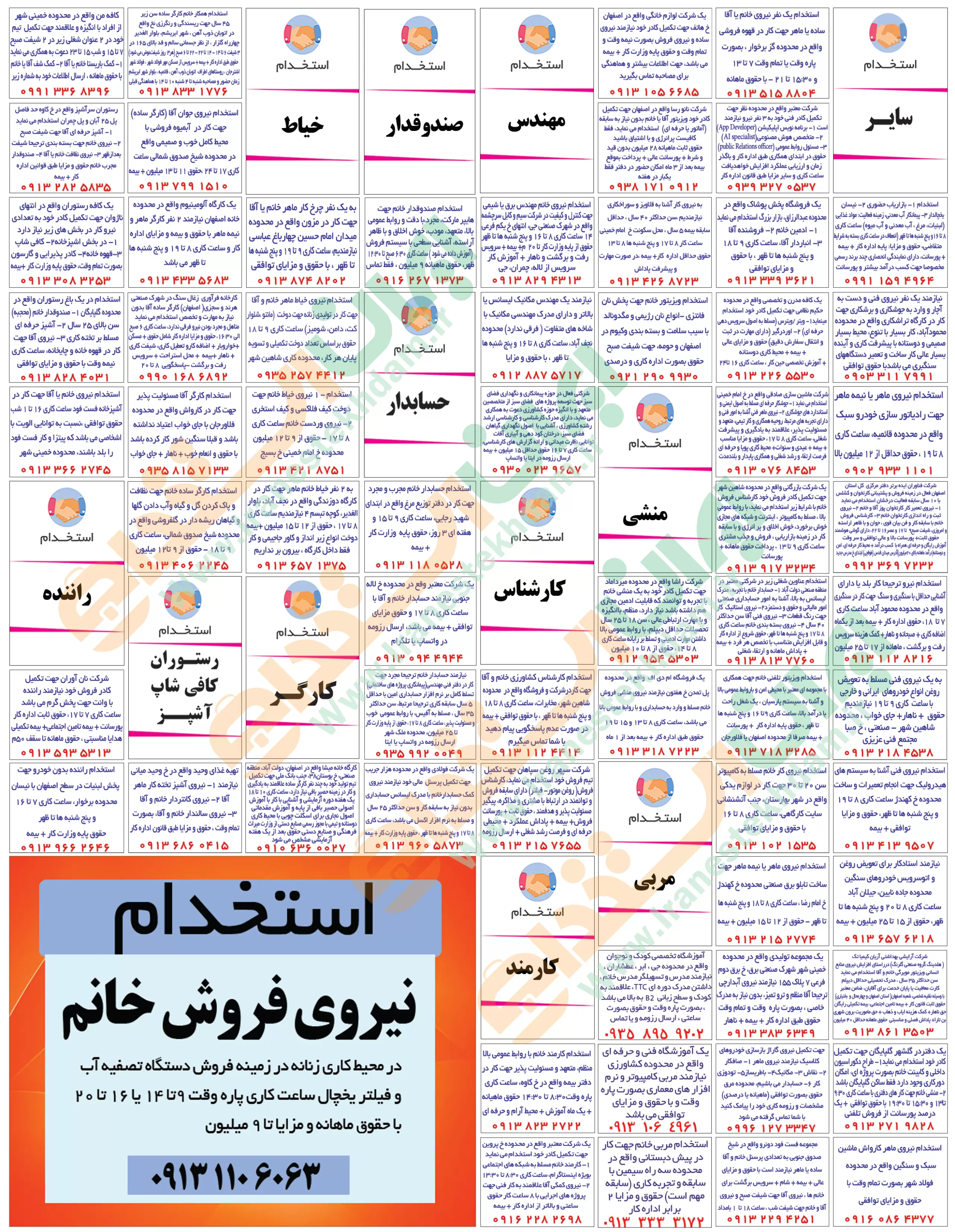 همچنین برای مشاهده صفحه نیازمندی های استخدامی استان اصفهان اینجا کلیک نمایید