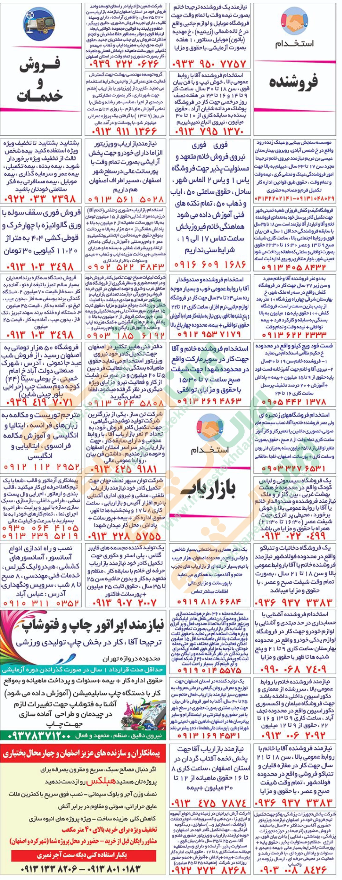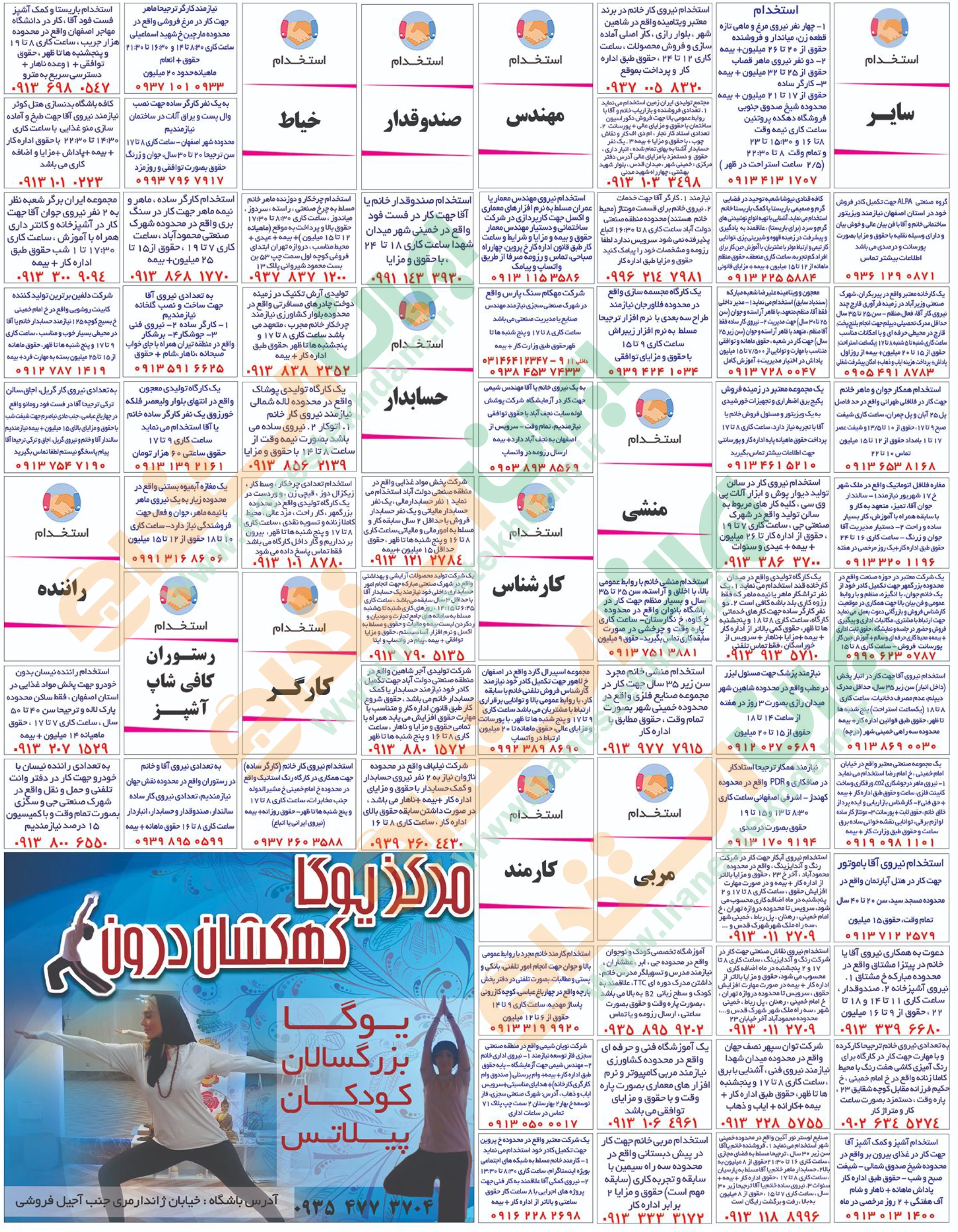 روزنامه استخدامی استان اصفهان | عصر سهشنبه 13 خرداد 1404