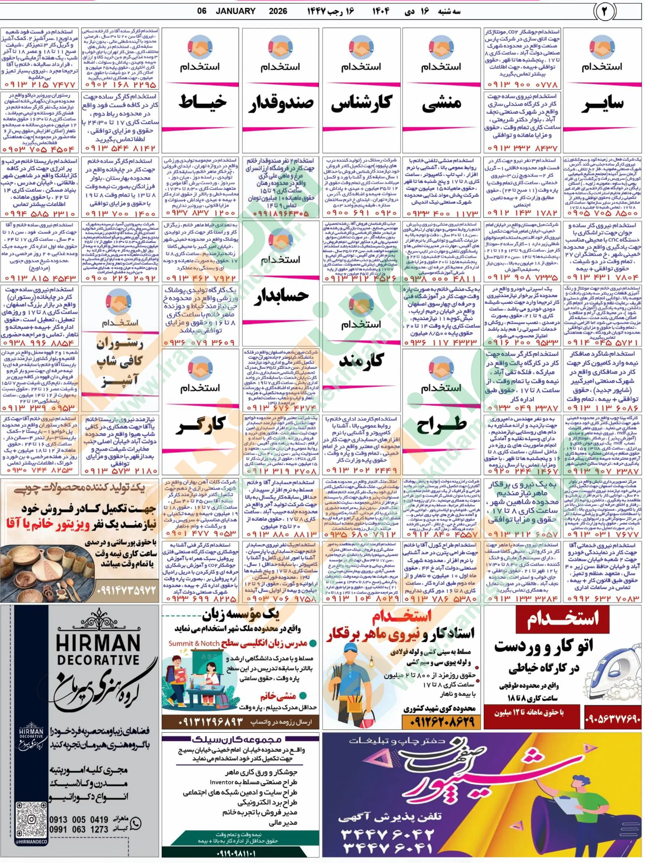 روزنامه استخدامی استان اصفهان | عصر سهشنبه ۱۶ دی ۱۴۰۴