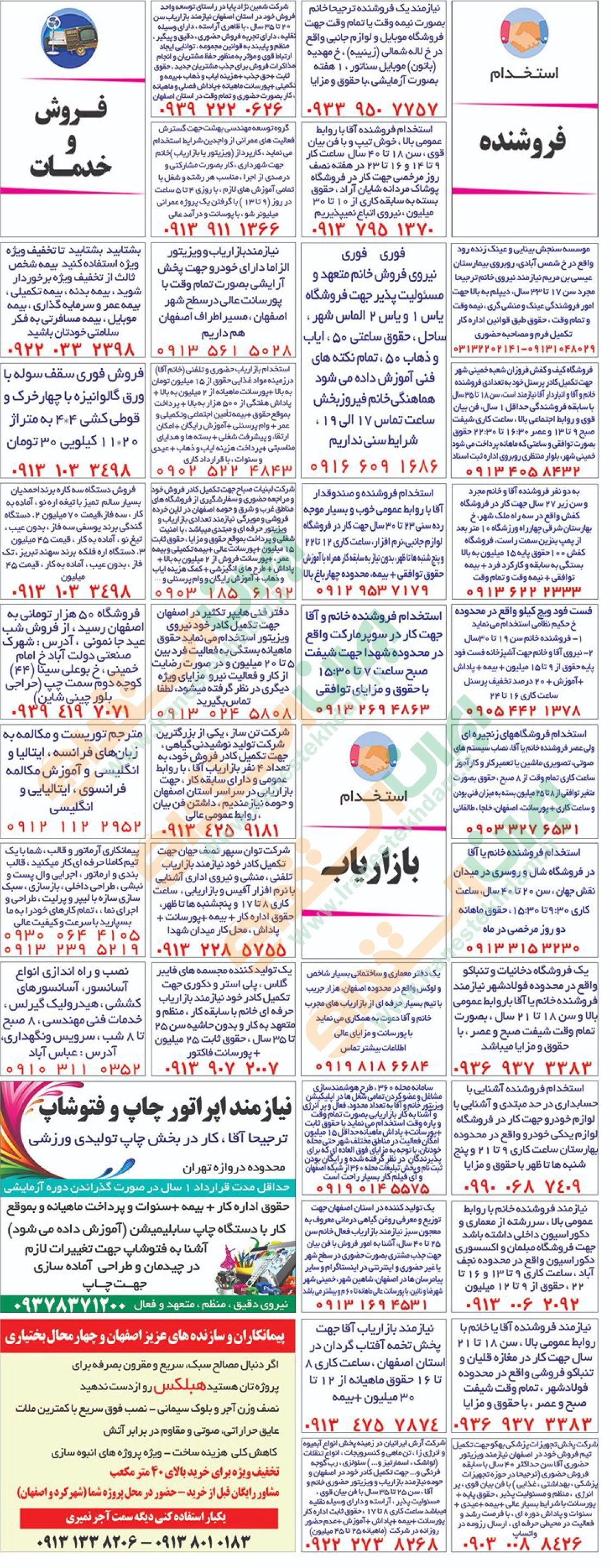 روزنامه استخدامی استان اصفهان | عصر شنبه ۱۷ خرداد ۱۴۰۴