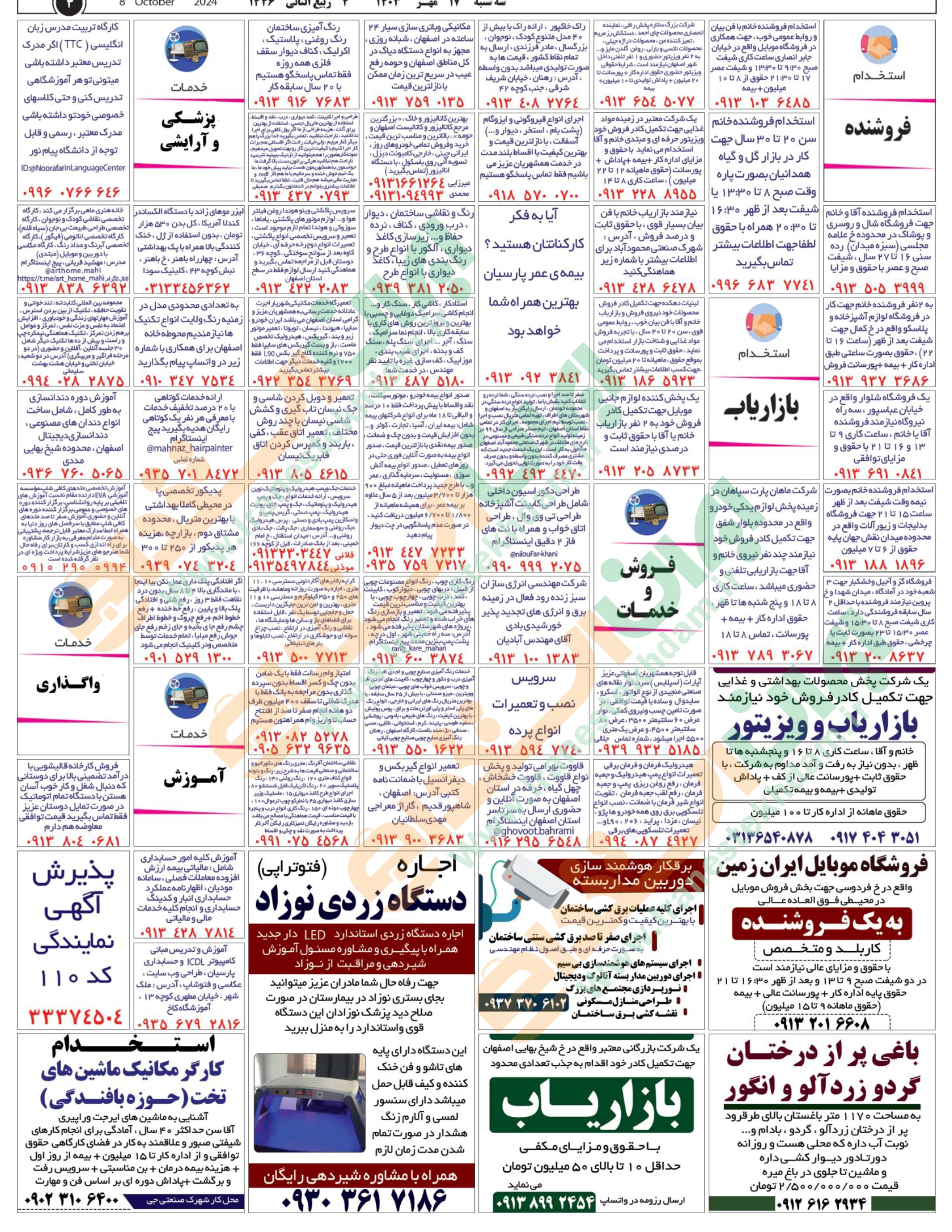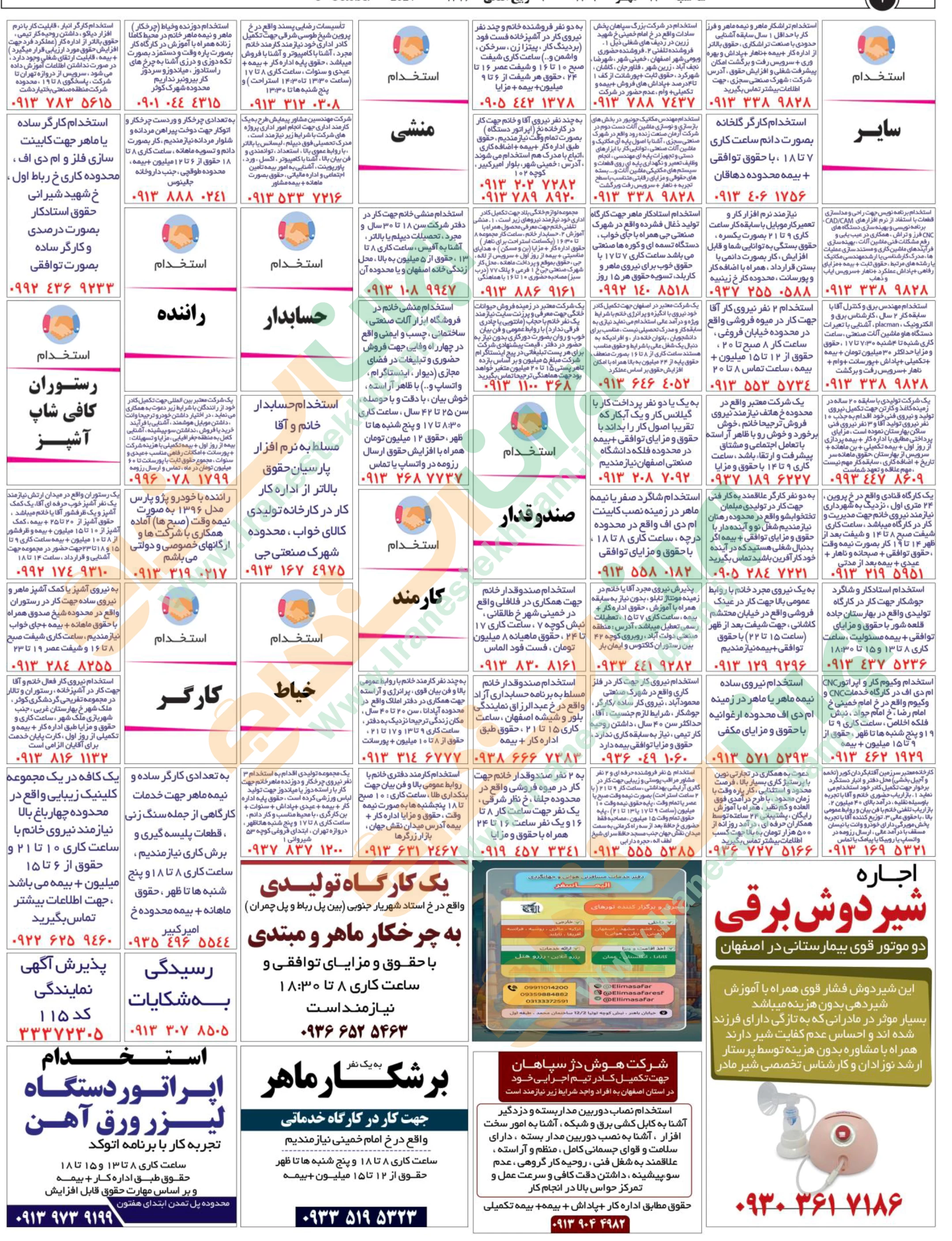 روزنامه استخدامی استان اصفهان | عصر سهشنبه 17 مهر 1403
