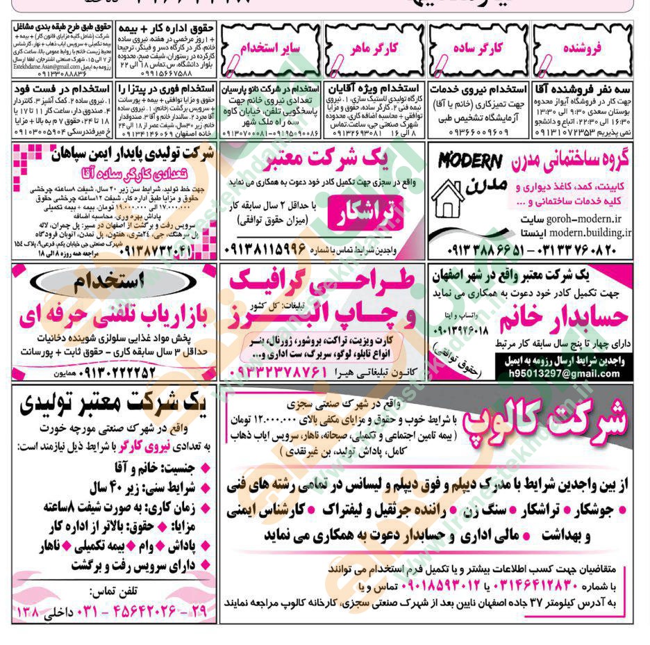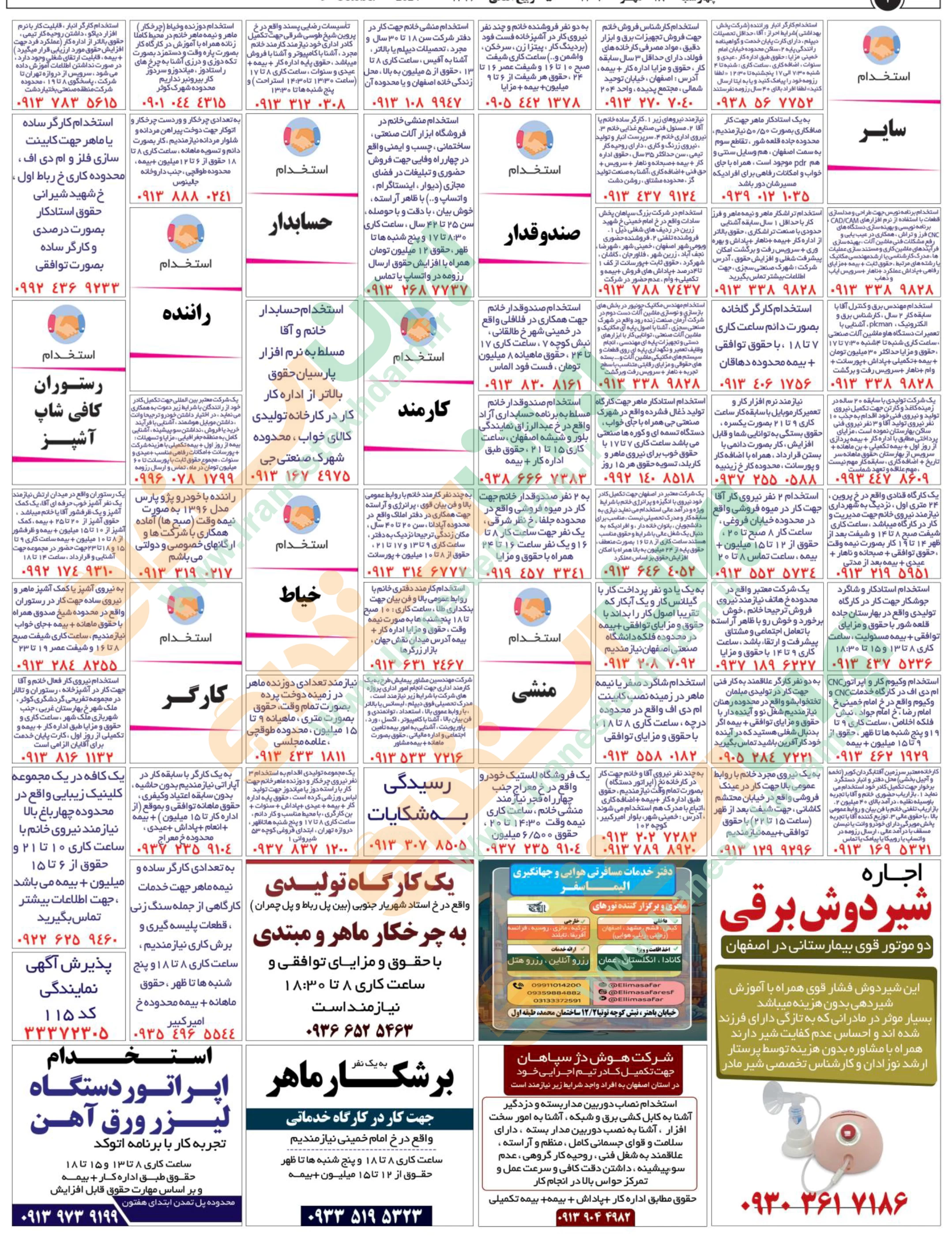 روزنامه استخدامی استان اصفهان | عصر چهارشنبه 18 مهر 1403