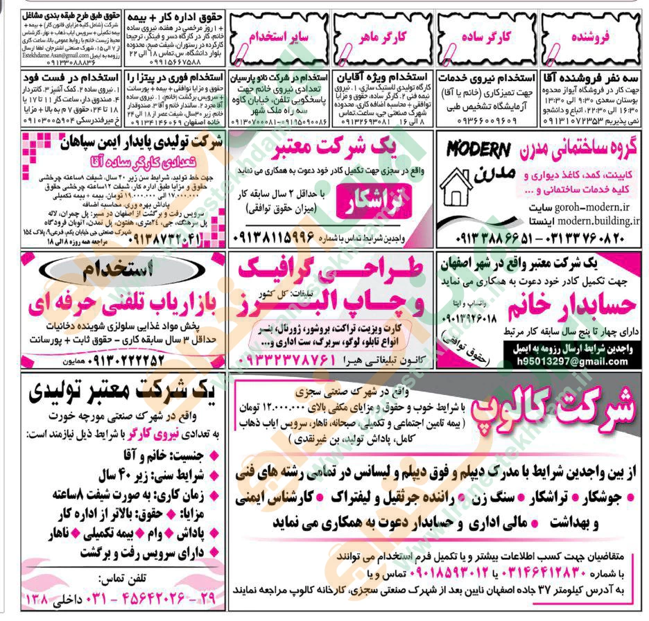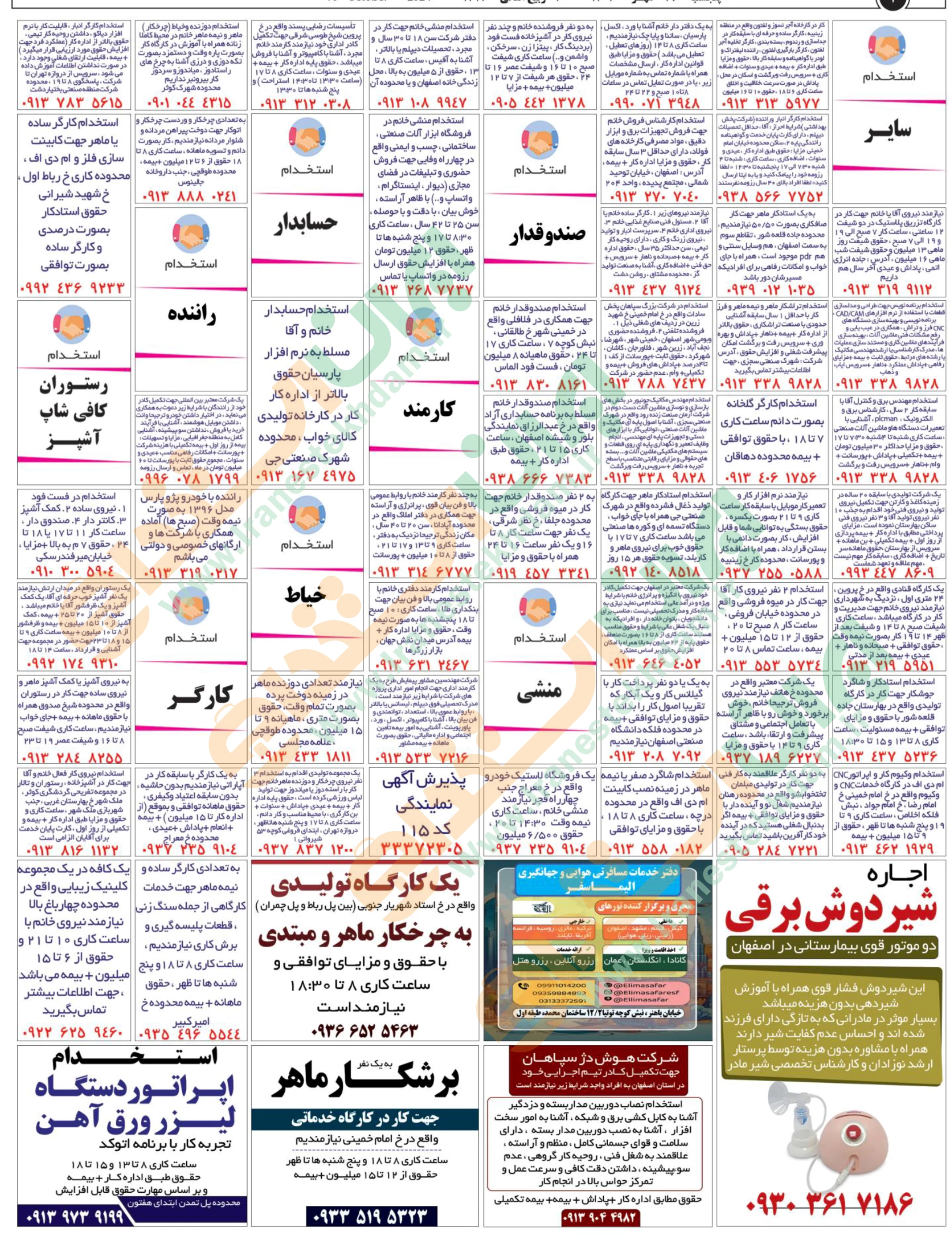 روزنامه استخدامی استان اصفهان | عصر پنجشنبه 19 مهر 1403