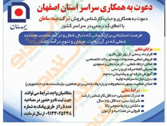 همچنین برای مشاهده صفحه نیازمندی های استخدامی استان اصفهان اینجا کلیک نمایید