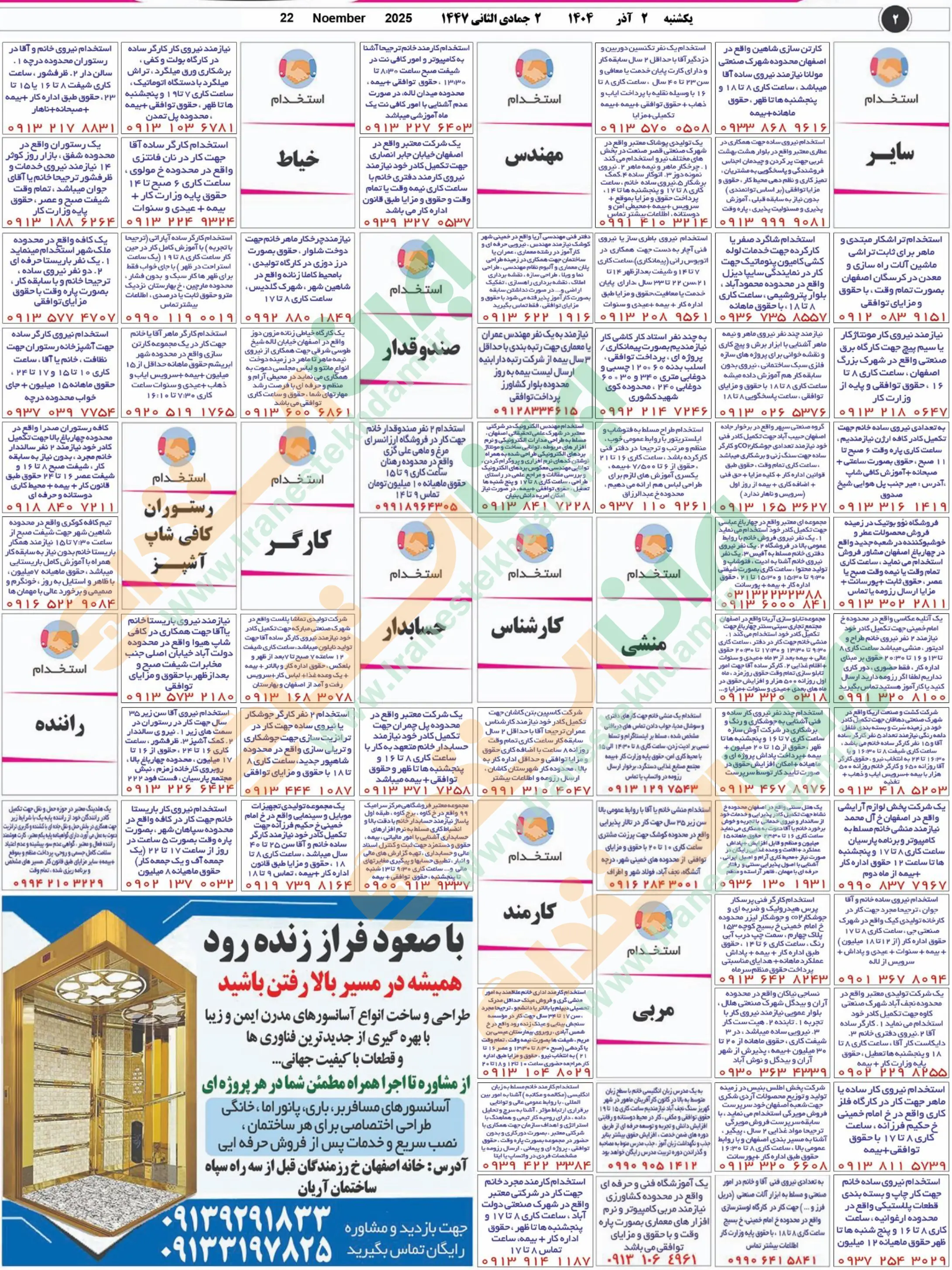 روزنامه استخدامی استان اصفهان | عصر یکشنبه 2 آذر 1404