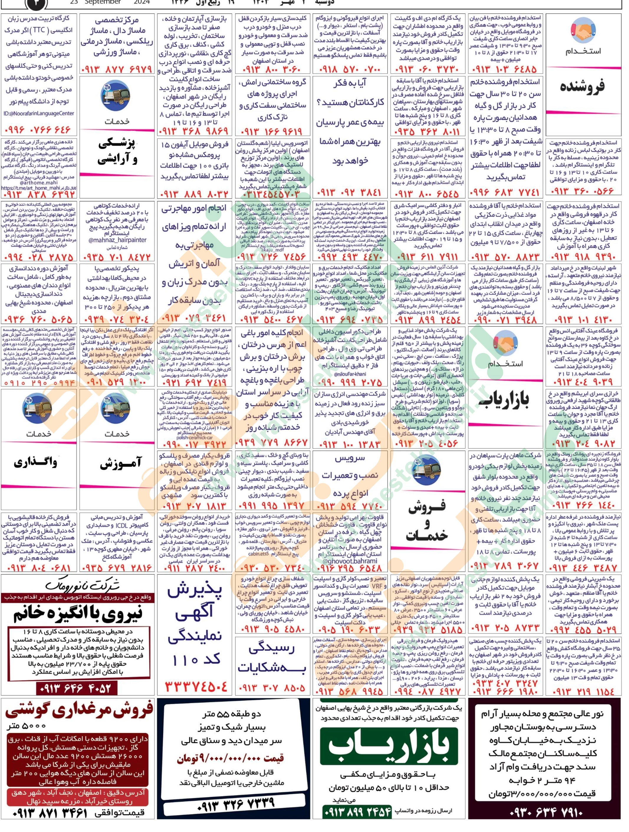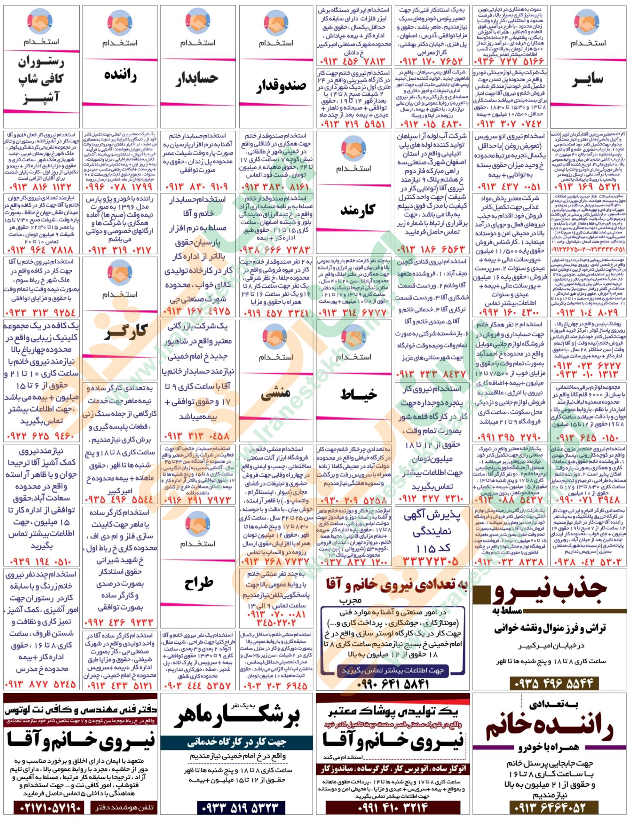 روزنامه استخدامی استان اصفهان | عصر دوشنبه 2 مهر 1403