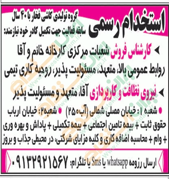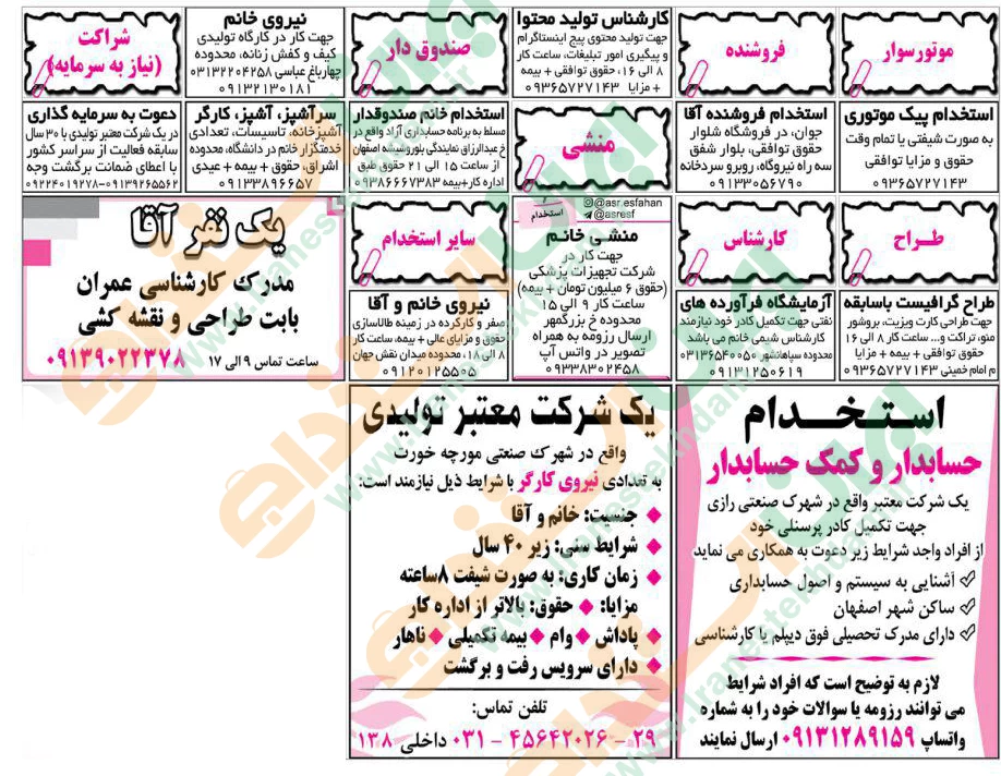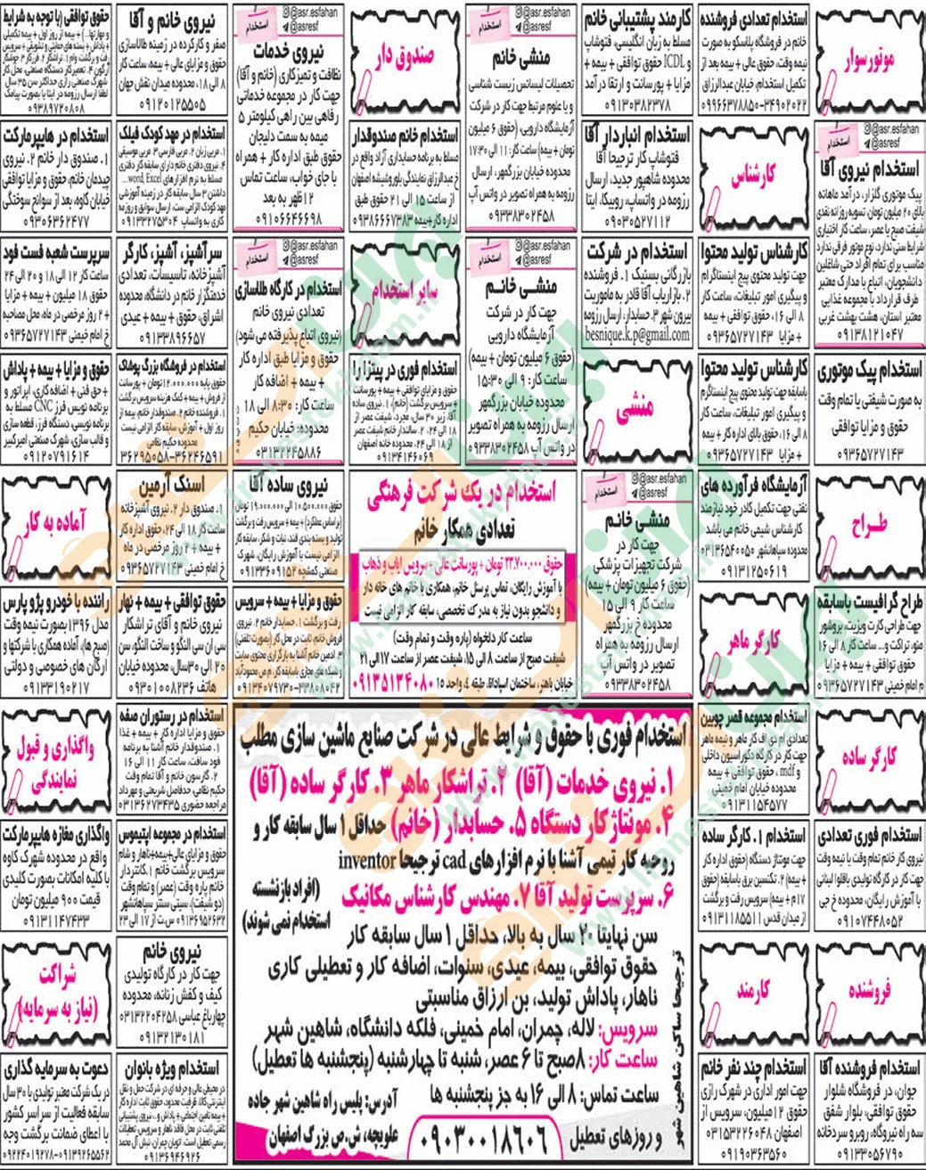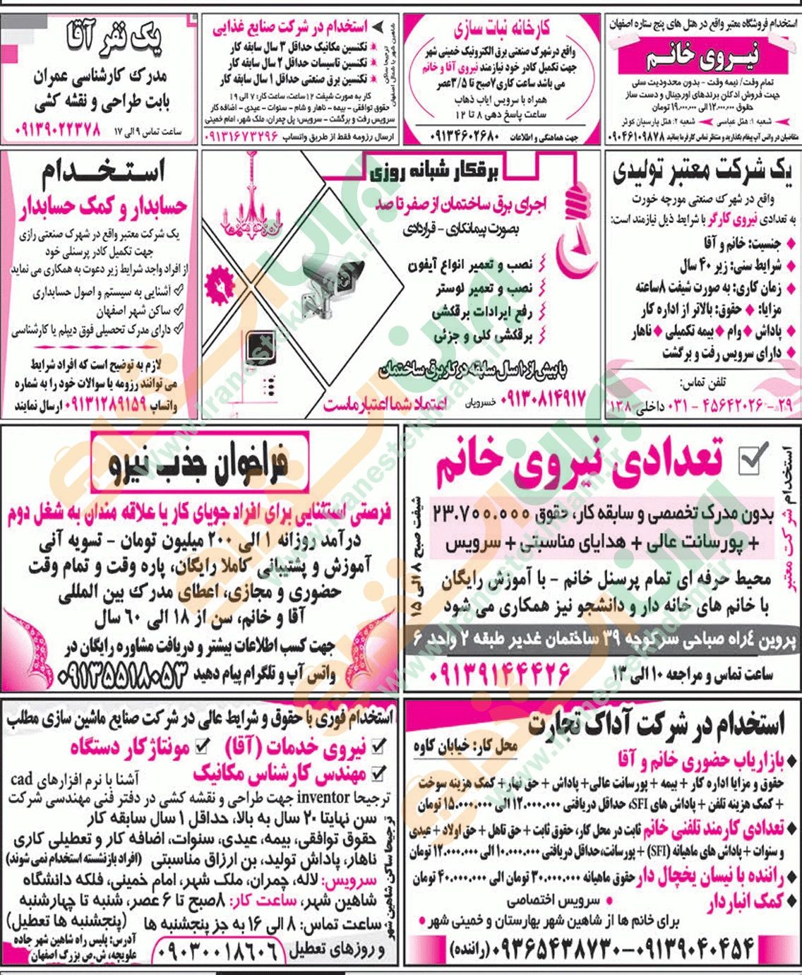 همچنین برای مشاهده صفحه نیازمندی های استخدامی استان اصفهان اینجا کلیک نمایید