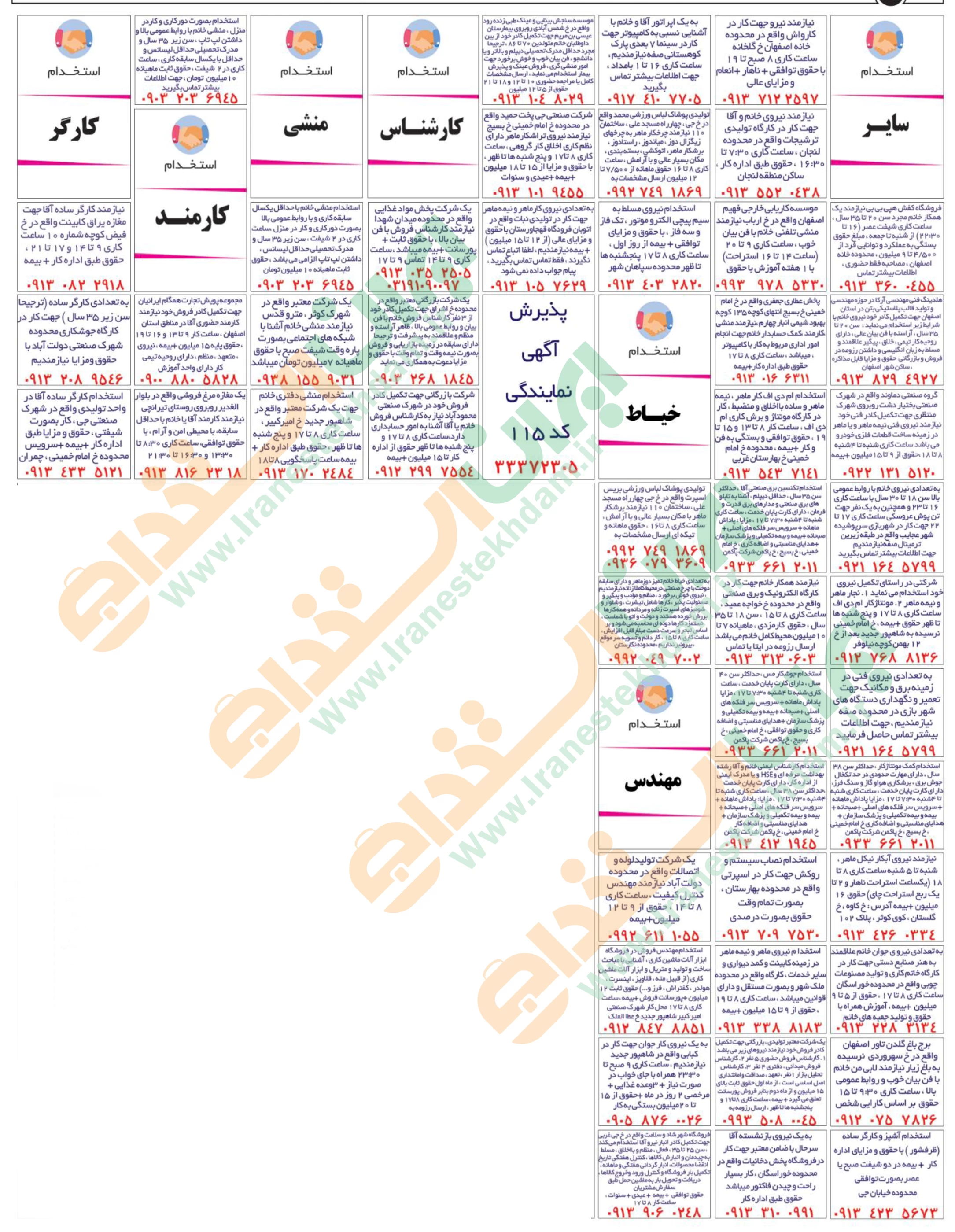همچنین برای مشاهده صفحه نیازمندی های استخدامی استان اصفهان اینجا کلیک نمایید