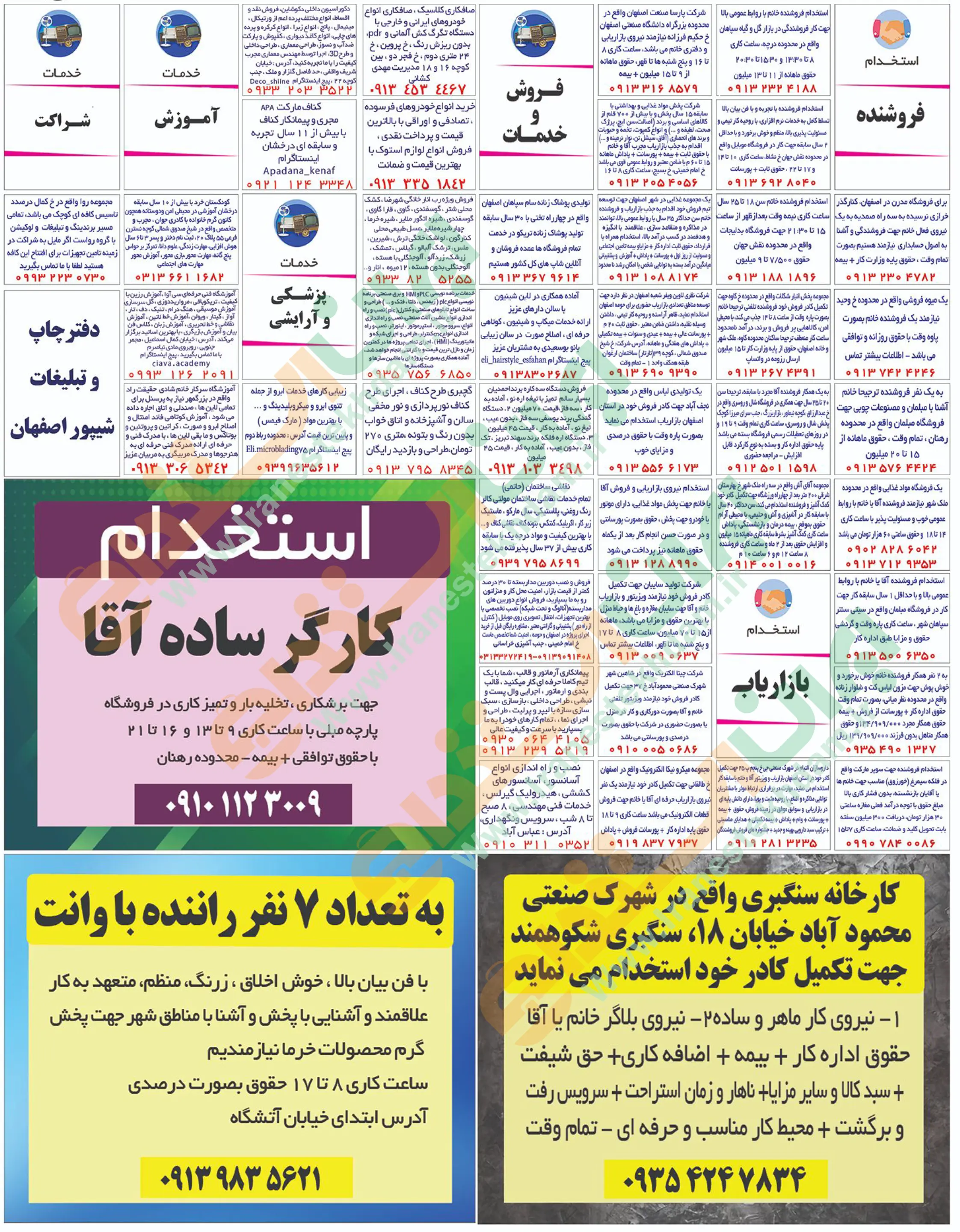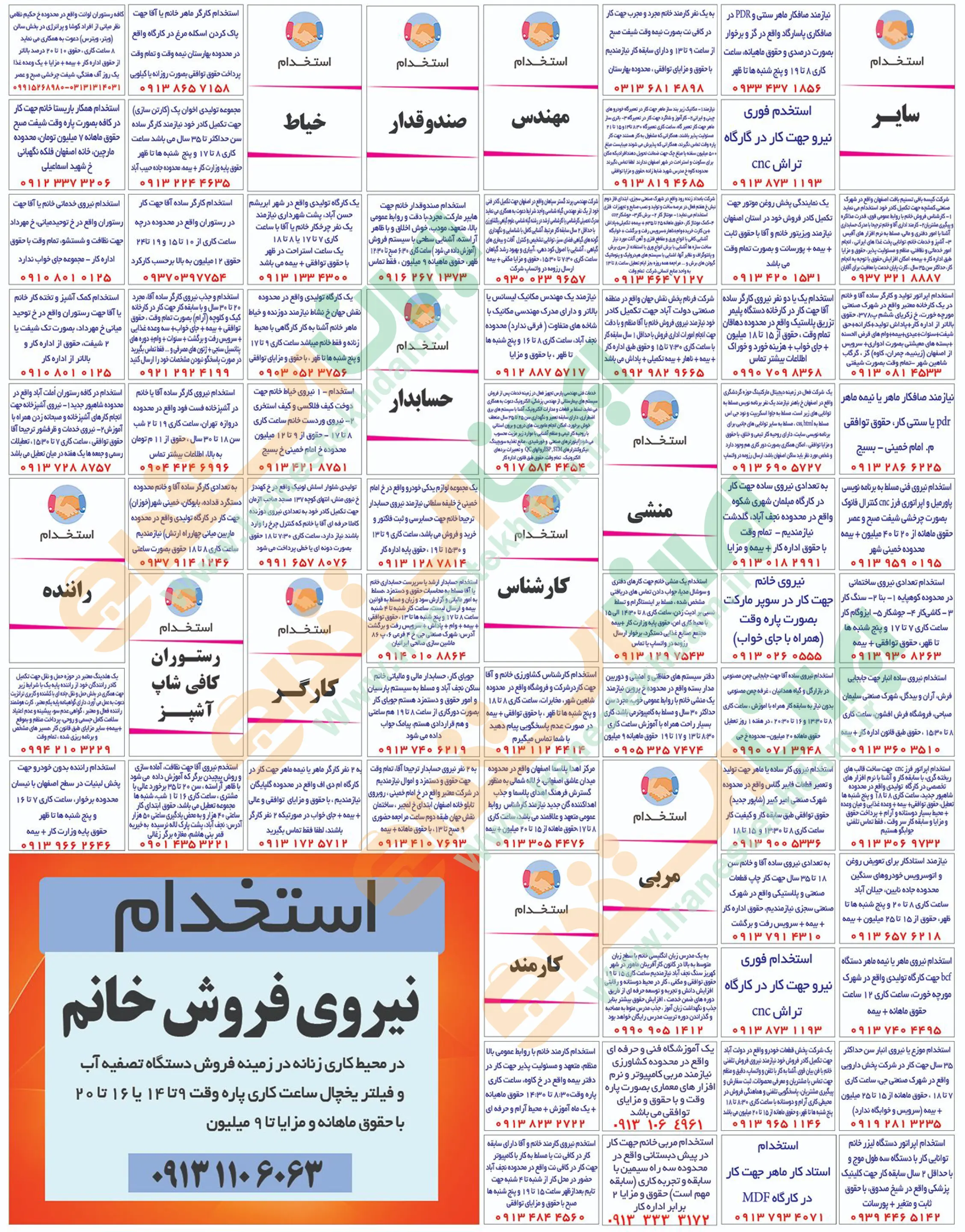روزنامه استخدامی استان اصفهان | عصر چهارشنبه 23 مهر 1404