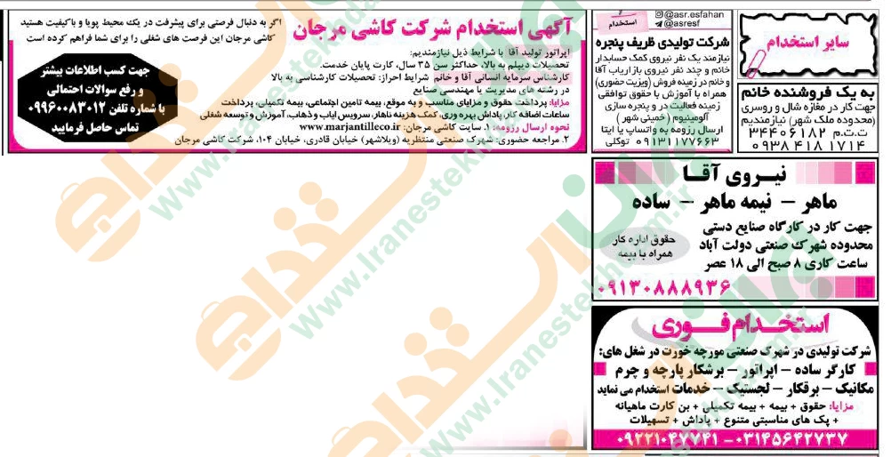 همچنین برای مشاهده صفحه نیازمندی های استخدامی استان اصفهان اینجا کلیک نمایید