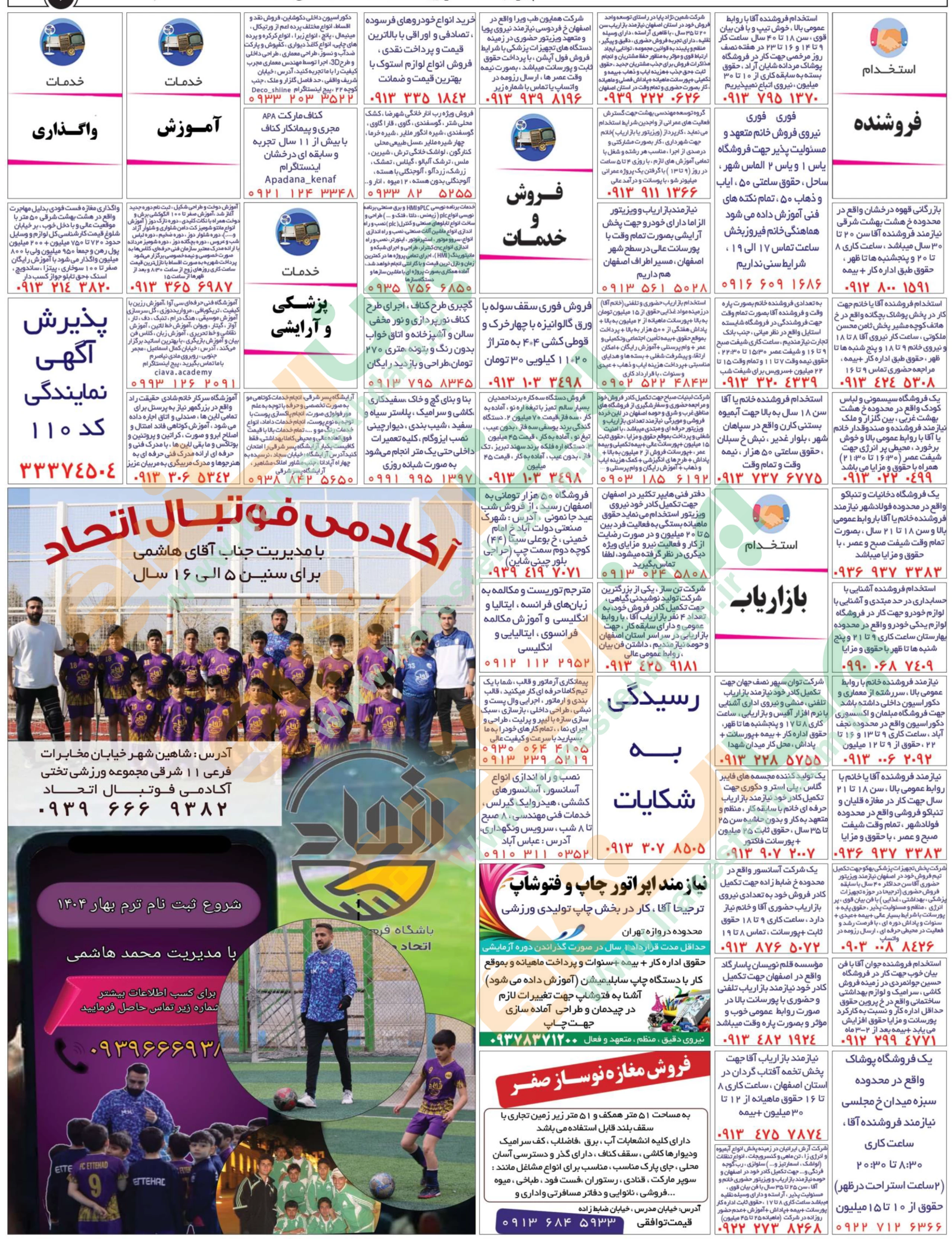 روزنامه استخدامی استان اصفهان | عصر چهارشنبه 24 اردیبهشت 1404