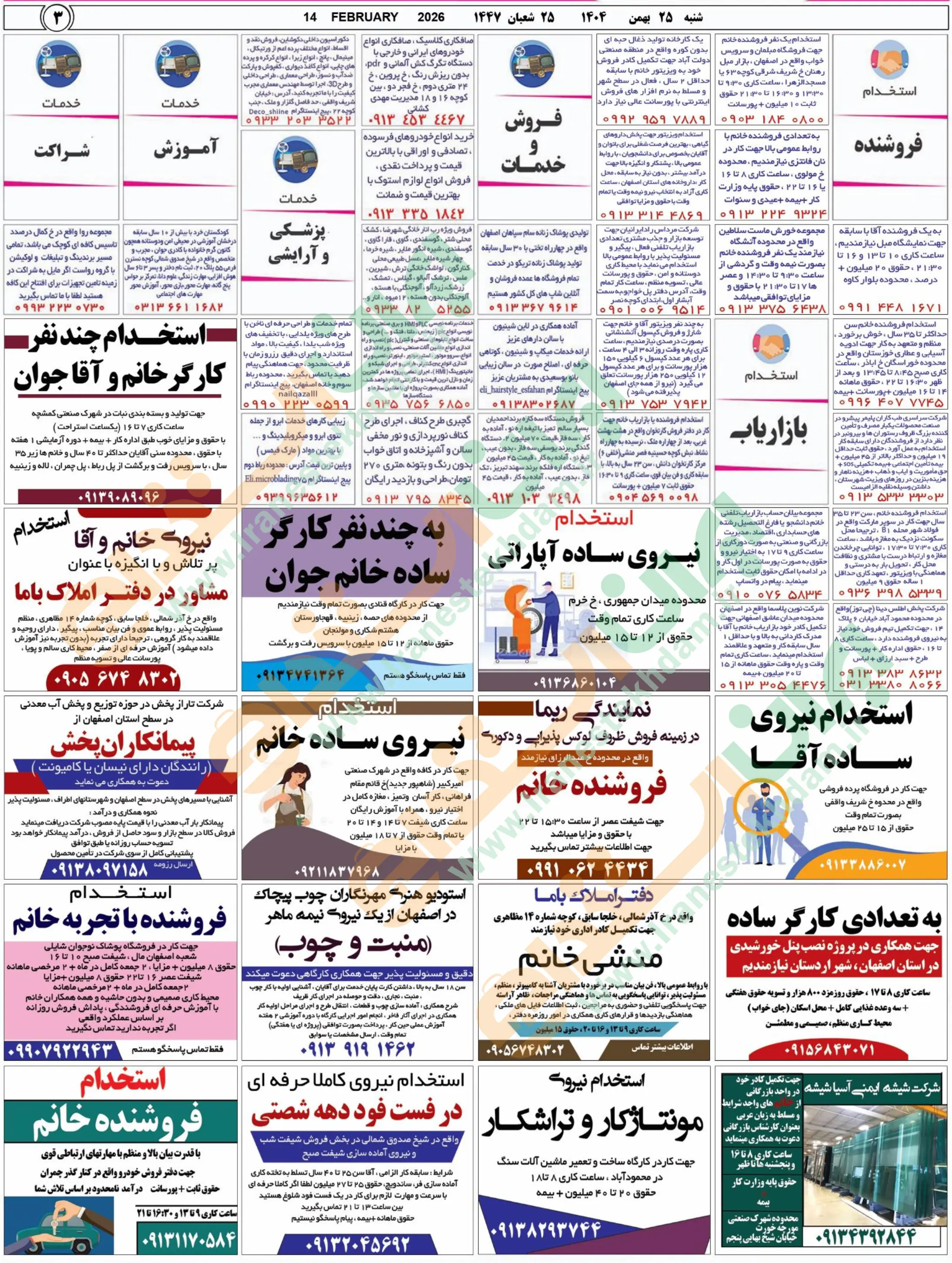 روزنامه استخدامی استان اصفهان | عصر شنبه ۲۵ بهمن ۱۴۰۴