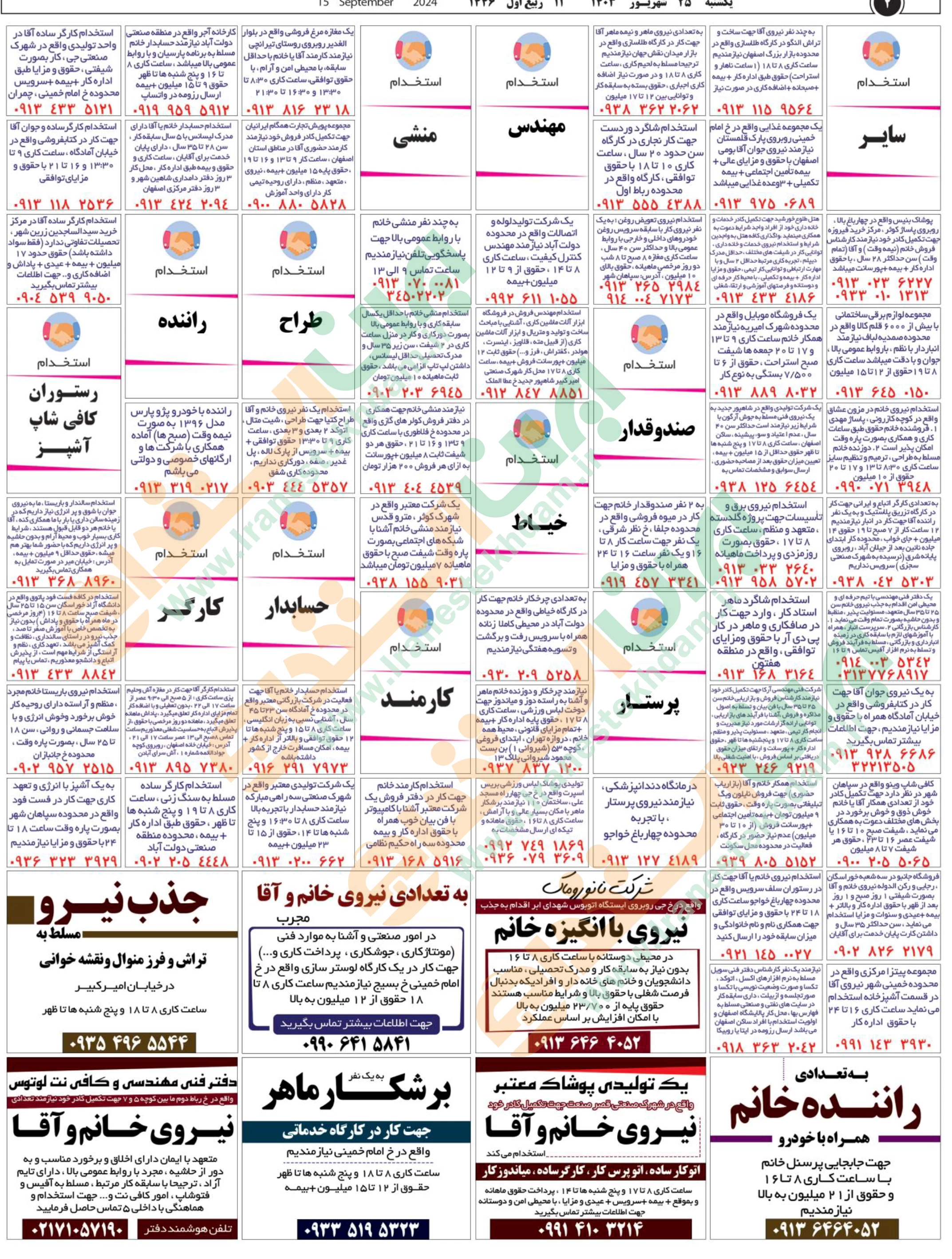 روزنامه استخدامی استان اصفهان | عصر یکشنبه 25 شهریور 1403