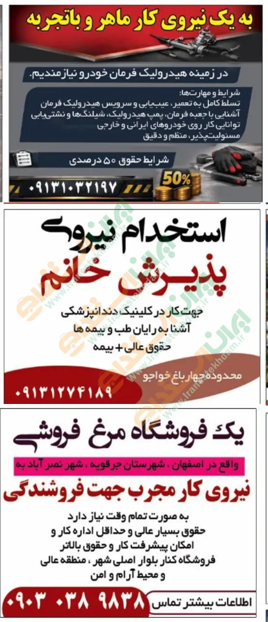 همچنین برای مشاهده صفحه نیازمندی های استخدامی استان اصفهان اینجا کلیک نمایید