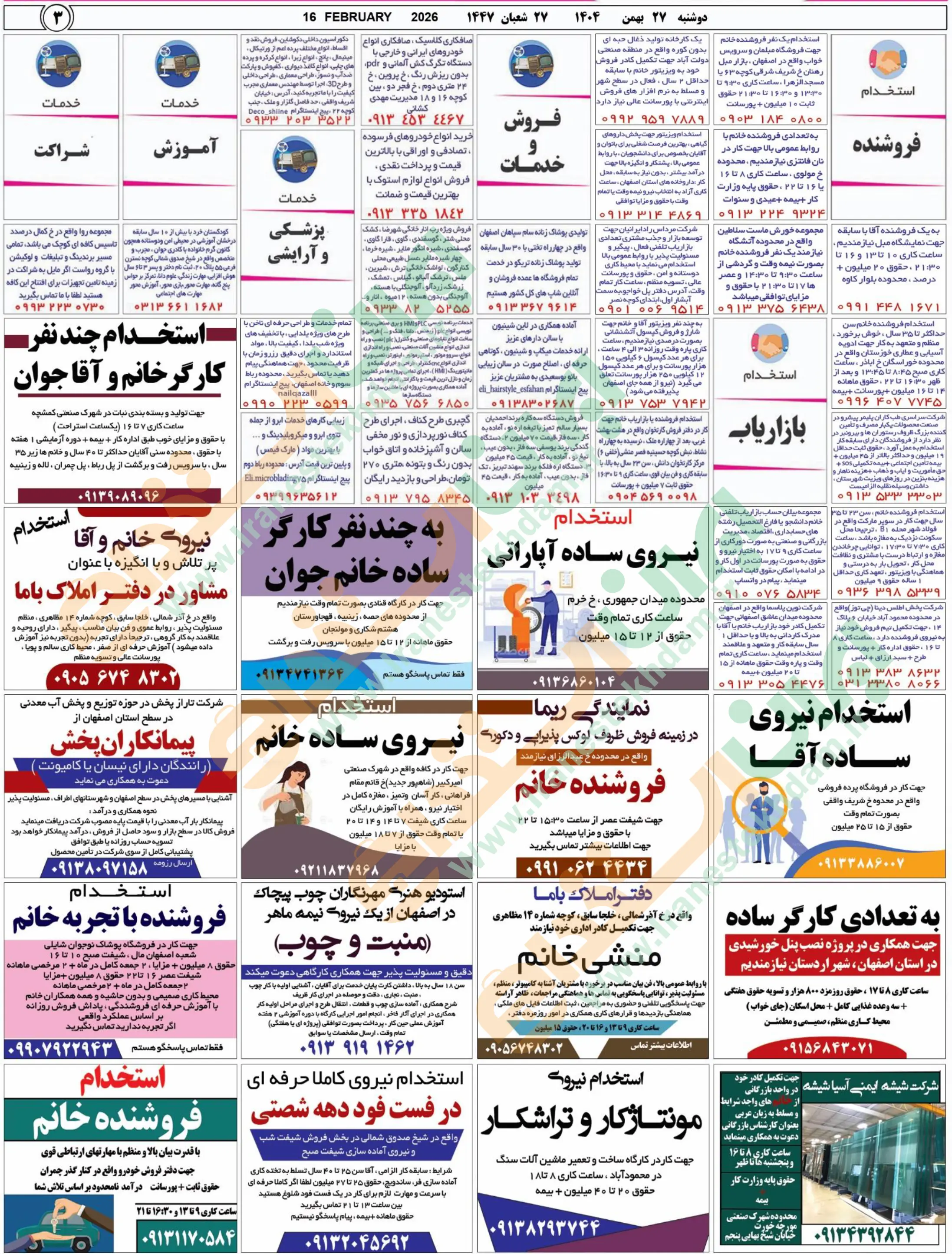 روزنامه استخدامی استان اصفهان | عصر دوشنبه 27 بهمن 1404
