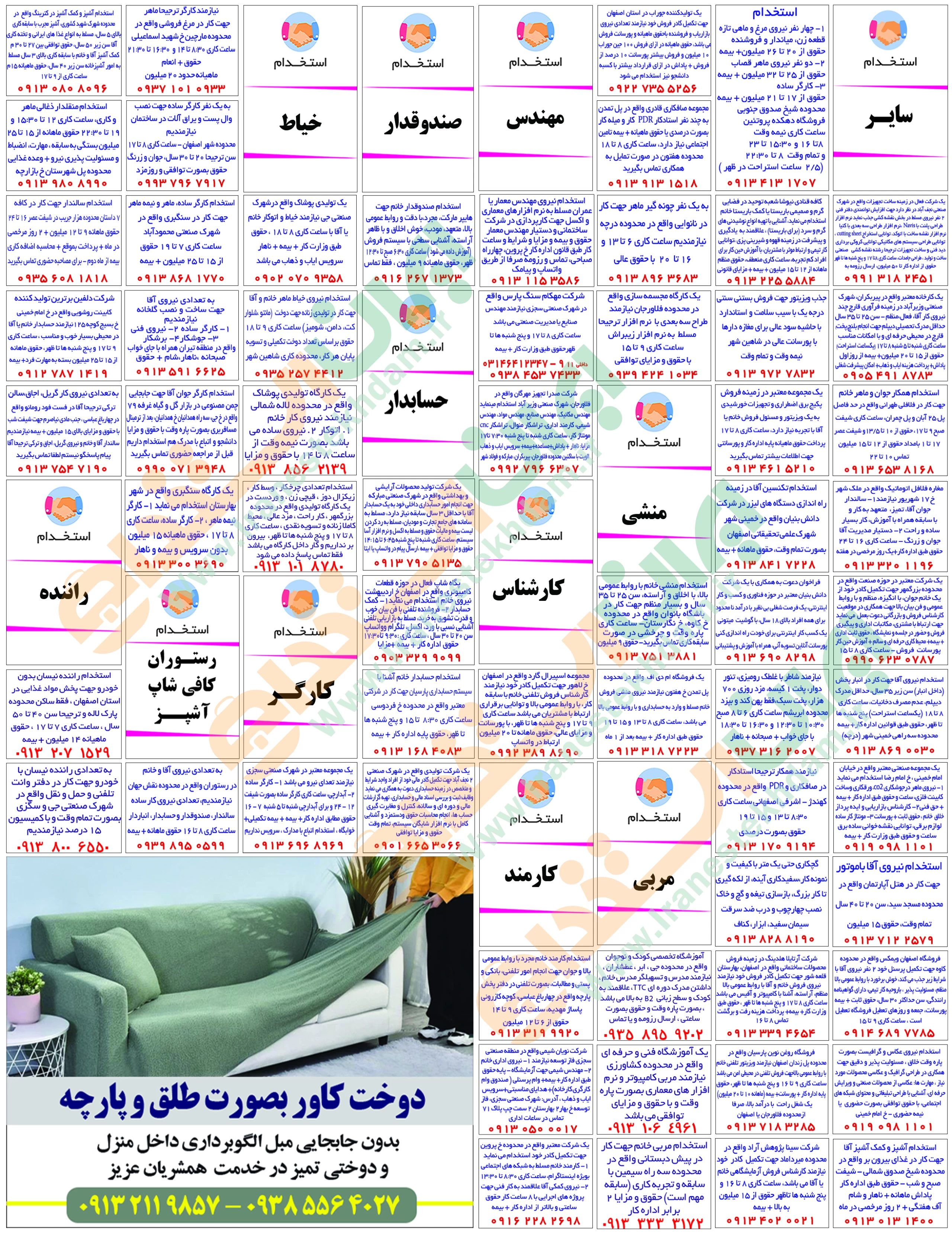 روزنامه استخدامی استان اصفهان | عصر سهشنبه ۲۷ خرداد ۱۴۰۴