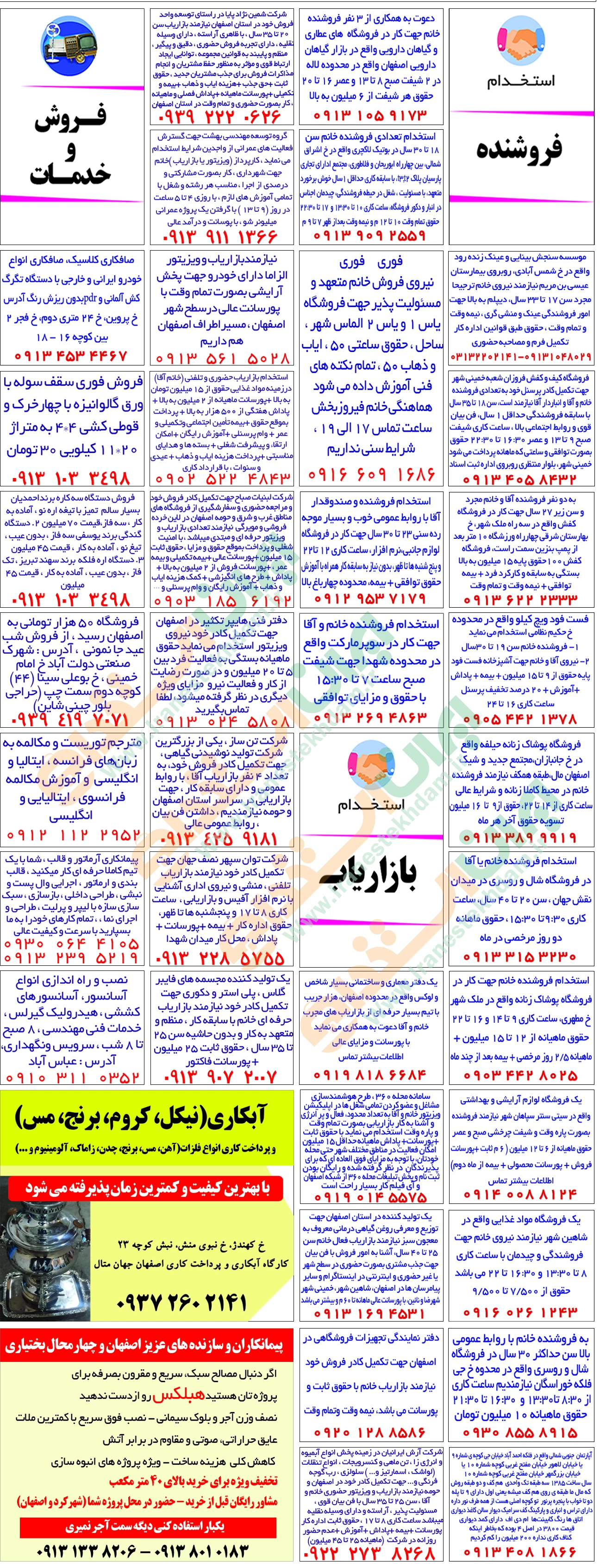 روزنامه استخدامی استان اصفهان | عصر سهشنبه 27 خرداد 1404