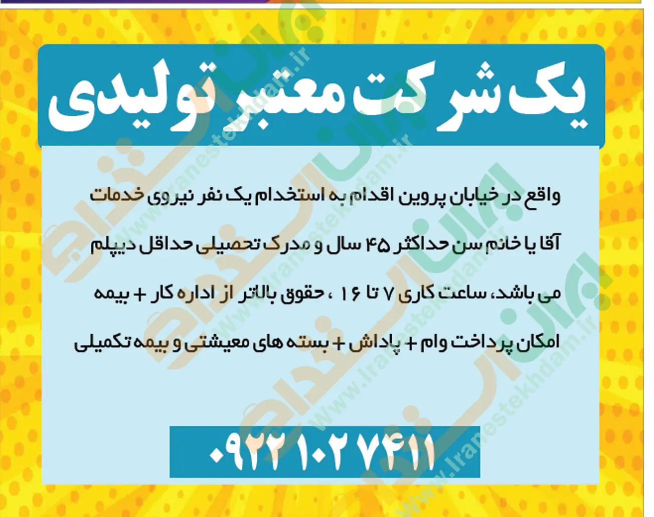 همچنین برای مشاهده صفحه نیازمندی های استخدامی استان اصفهان اینجا کلیک نمایید