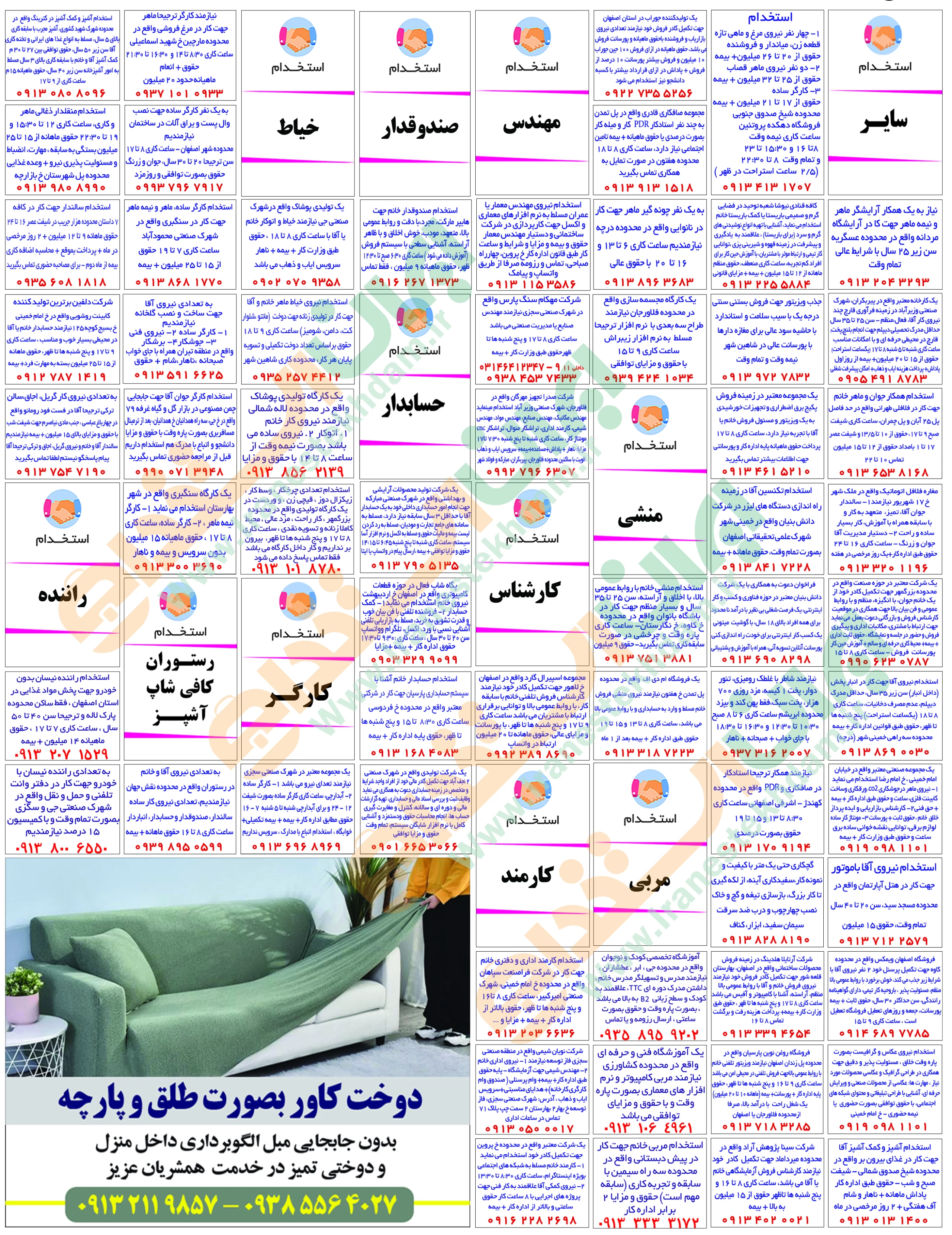روزنامه استخدامی استان اصفهان | عصر چهارشنبه 28 خرداد 1404