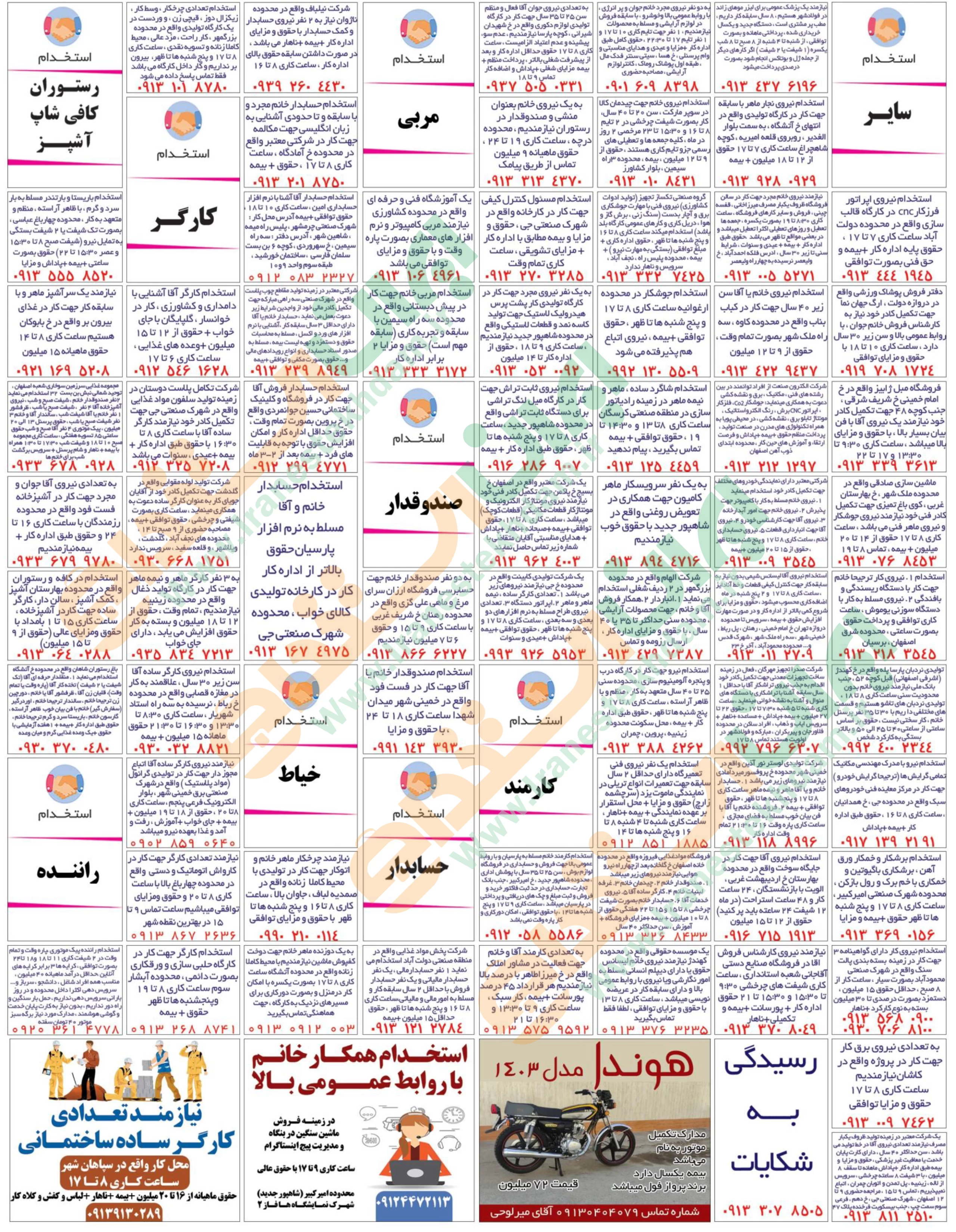 روزنامه استخدامی استان اصفهان | عصر پنجشنبه 28 فروردین 1404